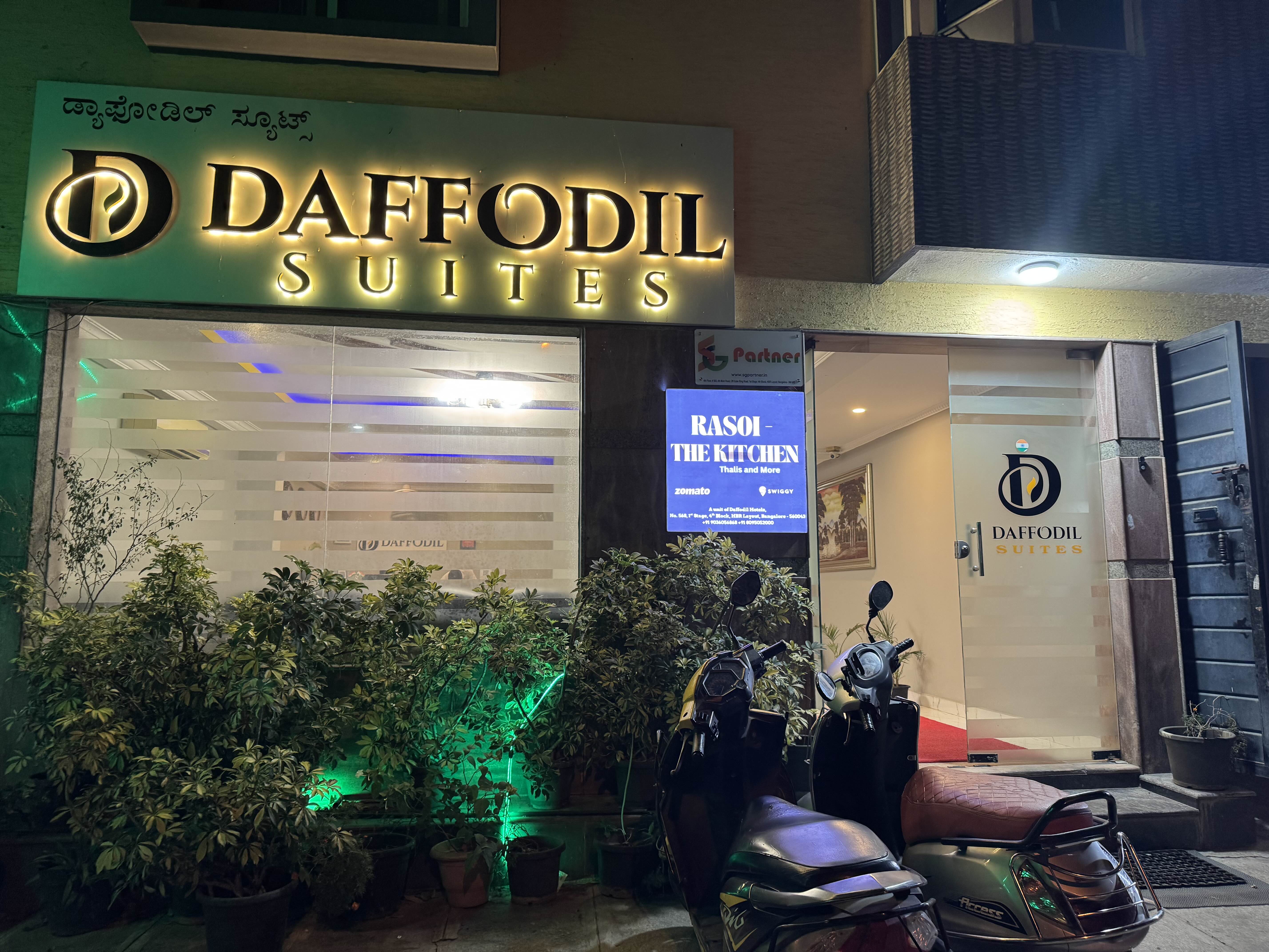 Booked two deluxe rooms for my family for a night’s stay at daffodil suites. It was located in a quiet area and was easily accessible. From the time of check in till the check out, it was really nice and comfortable. Receptionists were very friendly and cooperative. Room service was excellent. Requested few hours of extra time to check out and the hotel accommodated us. Would love to stay here on my further visits as well. Highly recommended to anyone thinking to book this hotel.