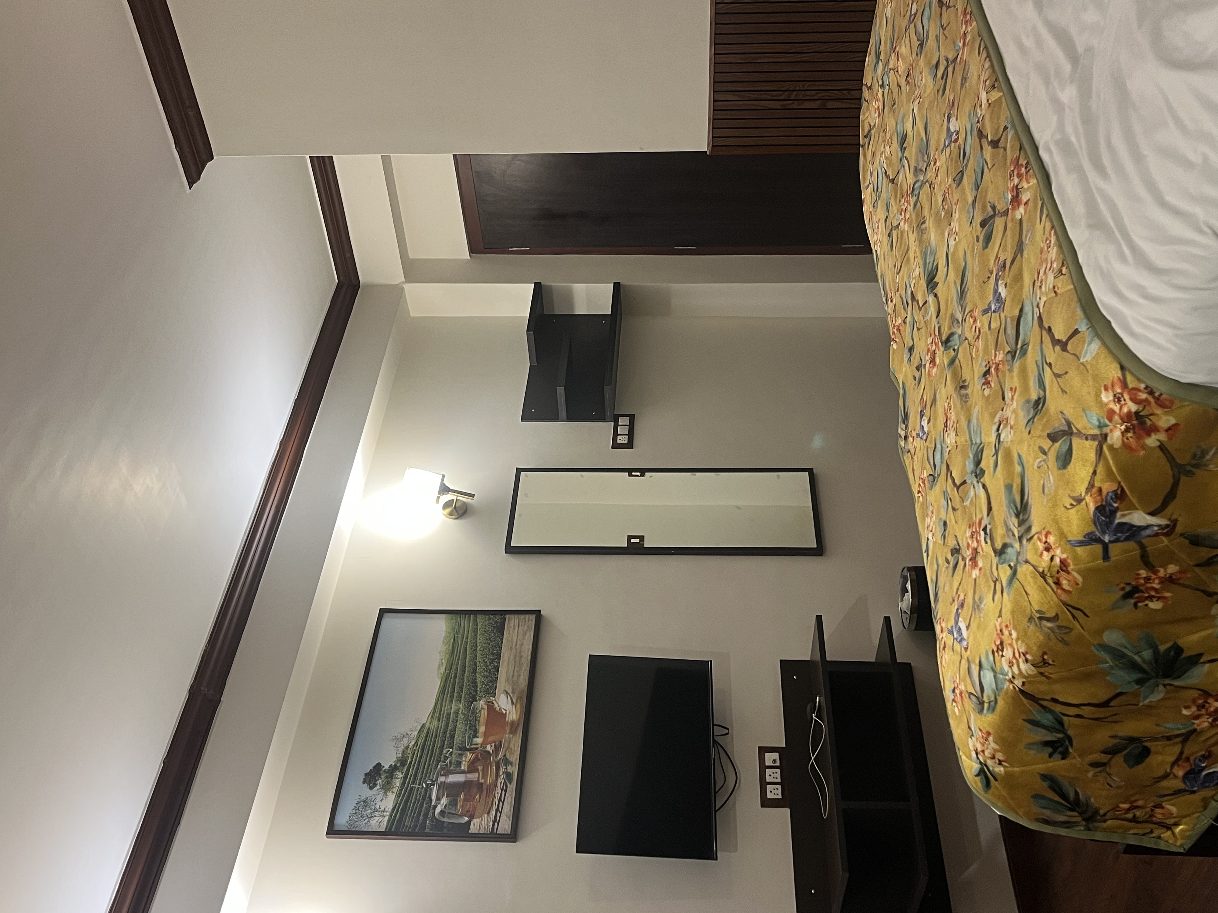 1. Location is far from the market and centre but at walking distance from Deolo park which is the main attraction of Kalimpong. 2. The view from the balcony is fantastic and Mt Kanchanjunga can be seen in the morning. The sunrise view is terrific. 3. The food is very good and serves good quantity but price is exorbitant. 4. The rooms don't have any fan or AC and in the month of September sometimes fan is required. On request they provided us with a stand fan. 5. The TV do not works and no cupboard are provided. So clothes are to be kept on the balcony chairs. 6. The service is prompt and the manager and staff are very responding. Special thanks to Shubham for his service. 7. A small table and two chairs inside the room was required so as to have food inside the room at night. An intercom could have been more useful than calling for service and food by mobile phone.