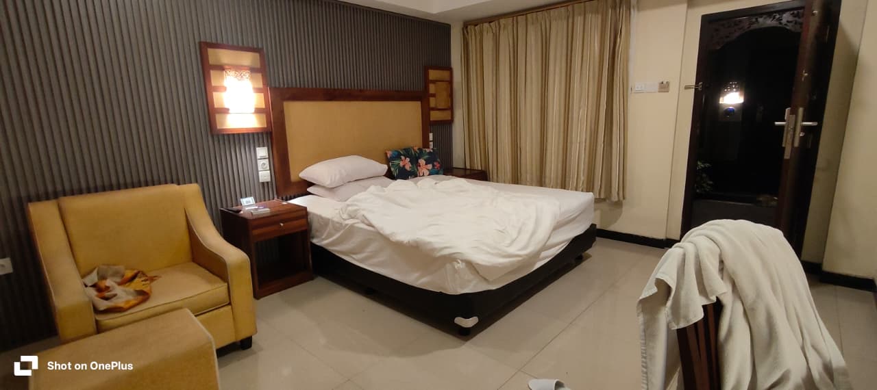 Found Property in MMT, and Hotel was a good place to stay in posh areas of Ubud. Traditional Breakfast with clean Swimming Pool with Bathtub and Brush and Comb and Shower area in Bathroom and Working TV with WiFi.