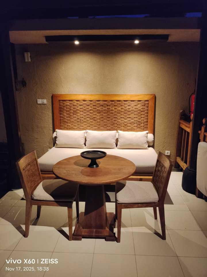 Ambience was straight from paradise, service is topnotch. You could literally live like a royalty. Food is a little expensive though. Aminities are world class. They even offer a free photo shoot and give a digital copy. And there is free shuttle to ubud center. Only disadvantages are taxis are not allowed in the area, other than for klook and tour packages. If you're a vegetarian, you have to go out to eat. Breakfast is impressive. And oh, there is 20 percent discount on spa services. You could just roam around the resort for a full day and still not be fulfilled.