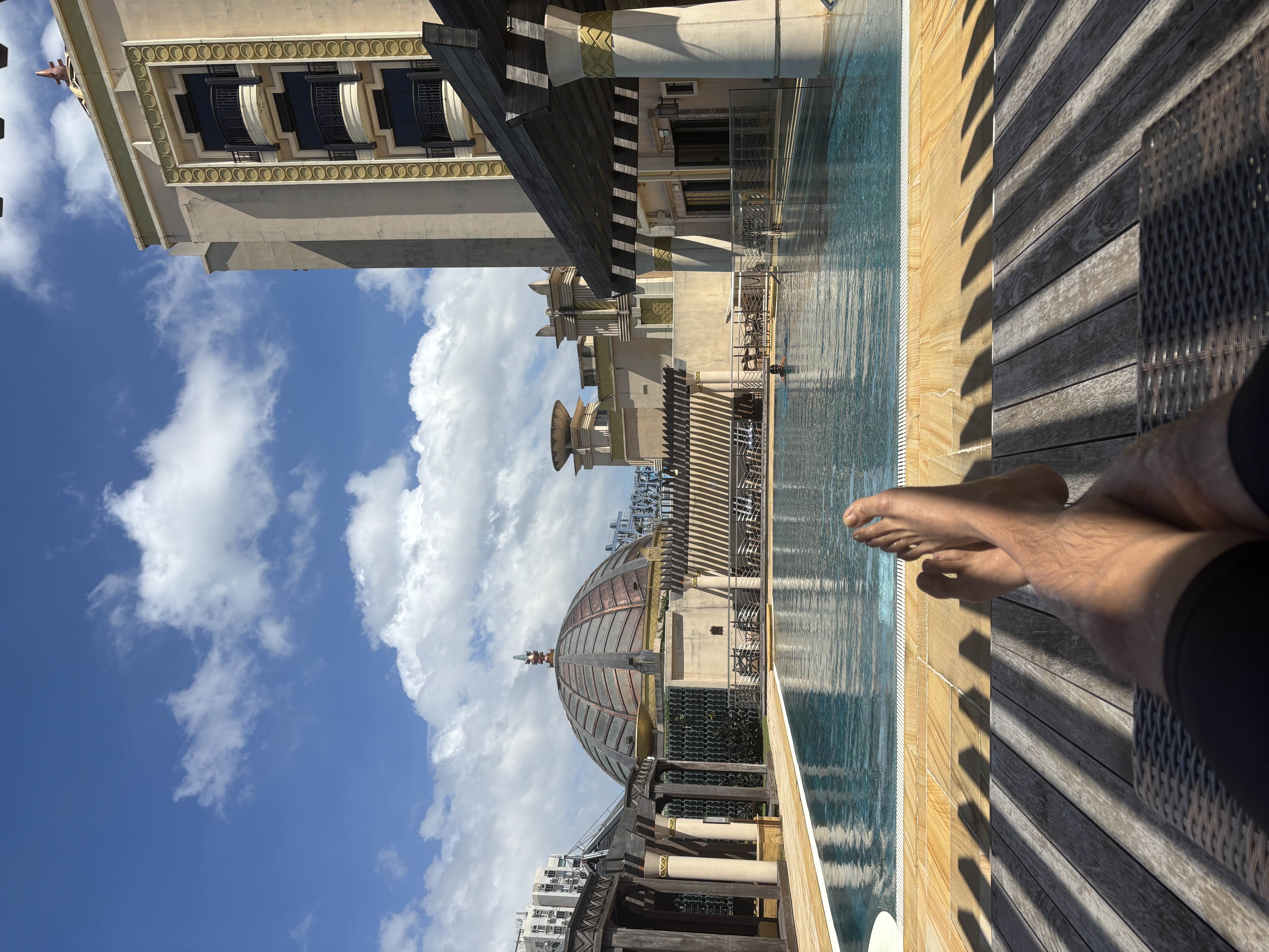 Well upon arrival to the Harbour walking distance was 4 mins and first look was an amazing sight. Hotel staff was very nice start from bellman to reception everyone was kind . Hotel room was super big with balcony washroom was also great had bathtub and all basic amenities. Gym was fully equipped with machines and pool was super great. Bad thing was due to typhoon it was not operational on my first day but second day it was , Casino was also good. The only bad experience I had was outside their restaurant Infinite where the waitress had no manners at all as soon as she got to know that I am vegetarian she had a problem 😅😅. Rest everything was super good .