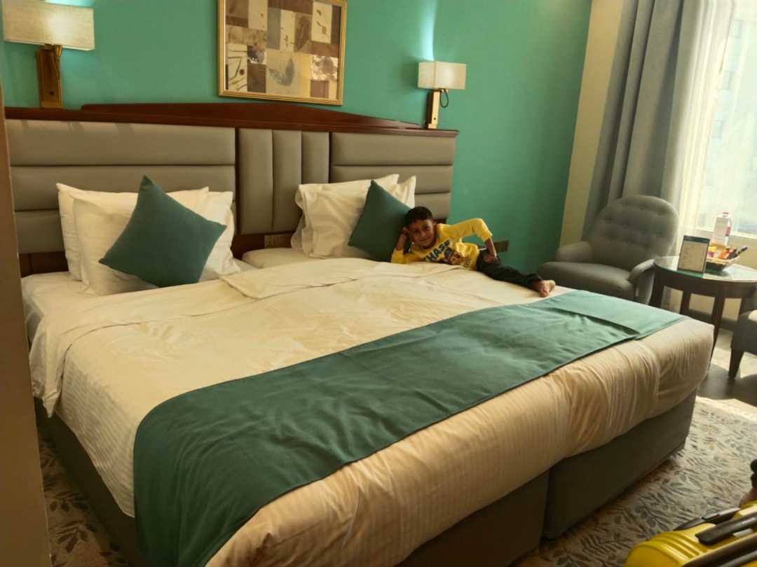 We recently stayed at this hotel with our family of five, including an infant, in two queen rooms. Although it was priced lower than similar hotels in Dubai, I'm regretting the decision due to several significant issues. Here are the main problems we faced: 1. the hotel appears old and outdated, with small rooms that don't match the description. 2. The rattling noise from the doors, caused by the A/C compressor, made nights unbearable. 3. The bathrooms were unpleasantly smelly, and the shower water pressure was too low to use comfortably. 4. The pub on the ground floor was extremely loud, making it impossible to sleep before 3 AM. 5. The complimentary Indian breakfast options looked promising but were inedible. Overall, I would advise potential guests to be cautious and not judge the hotel solely based on pictures. Spending a few thoudsands more will get you better hotels in Dubai.