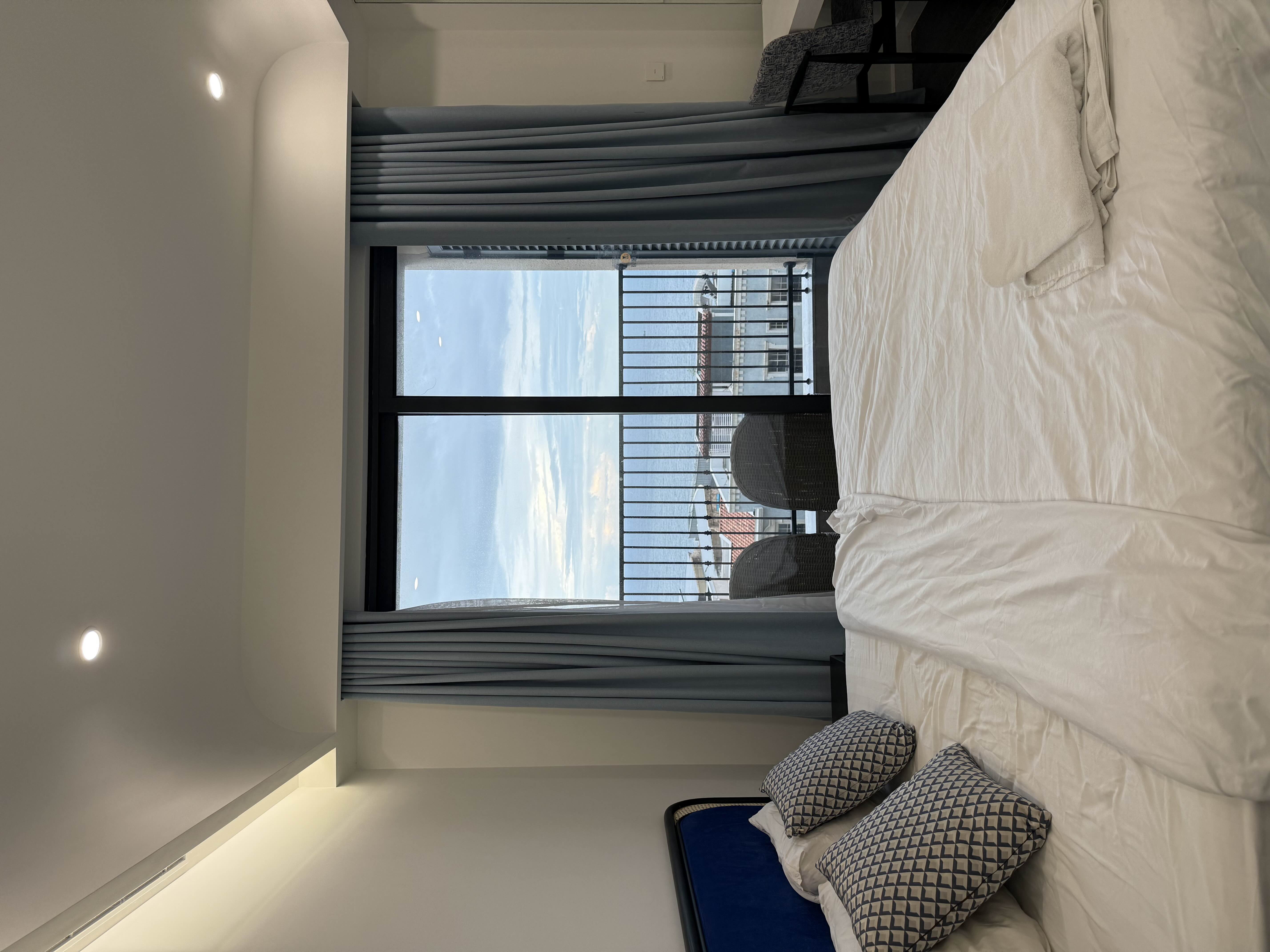 A white pristine Apartment that will steal your heart. This is one of the few properties with an awesome view of the streets around and also gives a glimpse of the fireworks happening near the bridge. It is also located strategically close to the kiss of the sea amphitheatre and also near to a very popular Indian restaurant. One of the best places to stay and the staff was helpful, well informed and courteous as well. The room was neat and clean and had all the essentials.