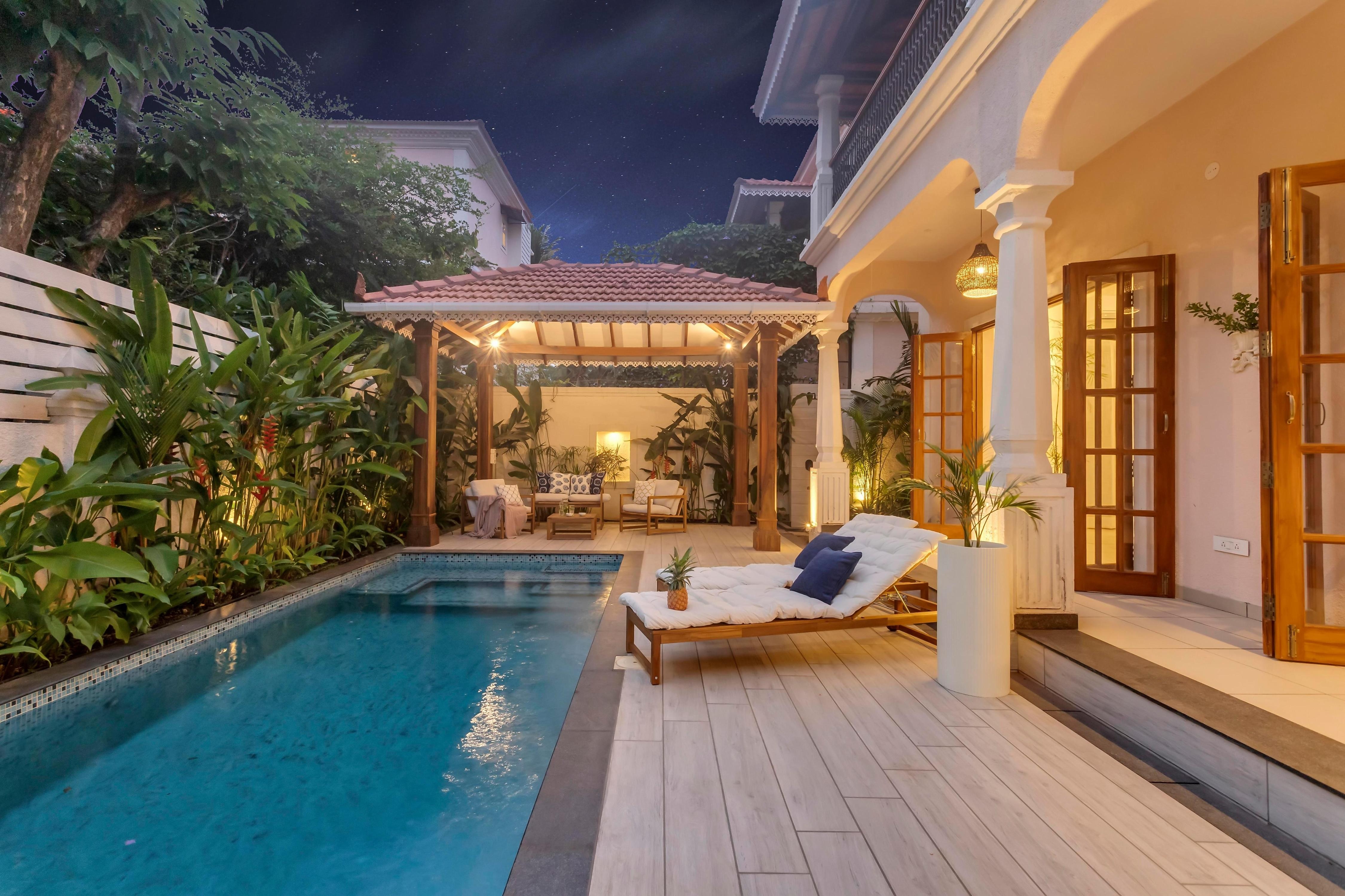 Discover a luxurious 4-bedroom villa in Arpora, Goa. With a private pool, charming gazebo, and lush garden, this villa is the pe ...Read moreLogin to unlock deals & manage your bookings!
