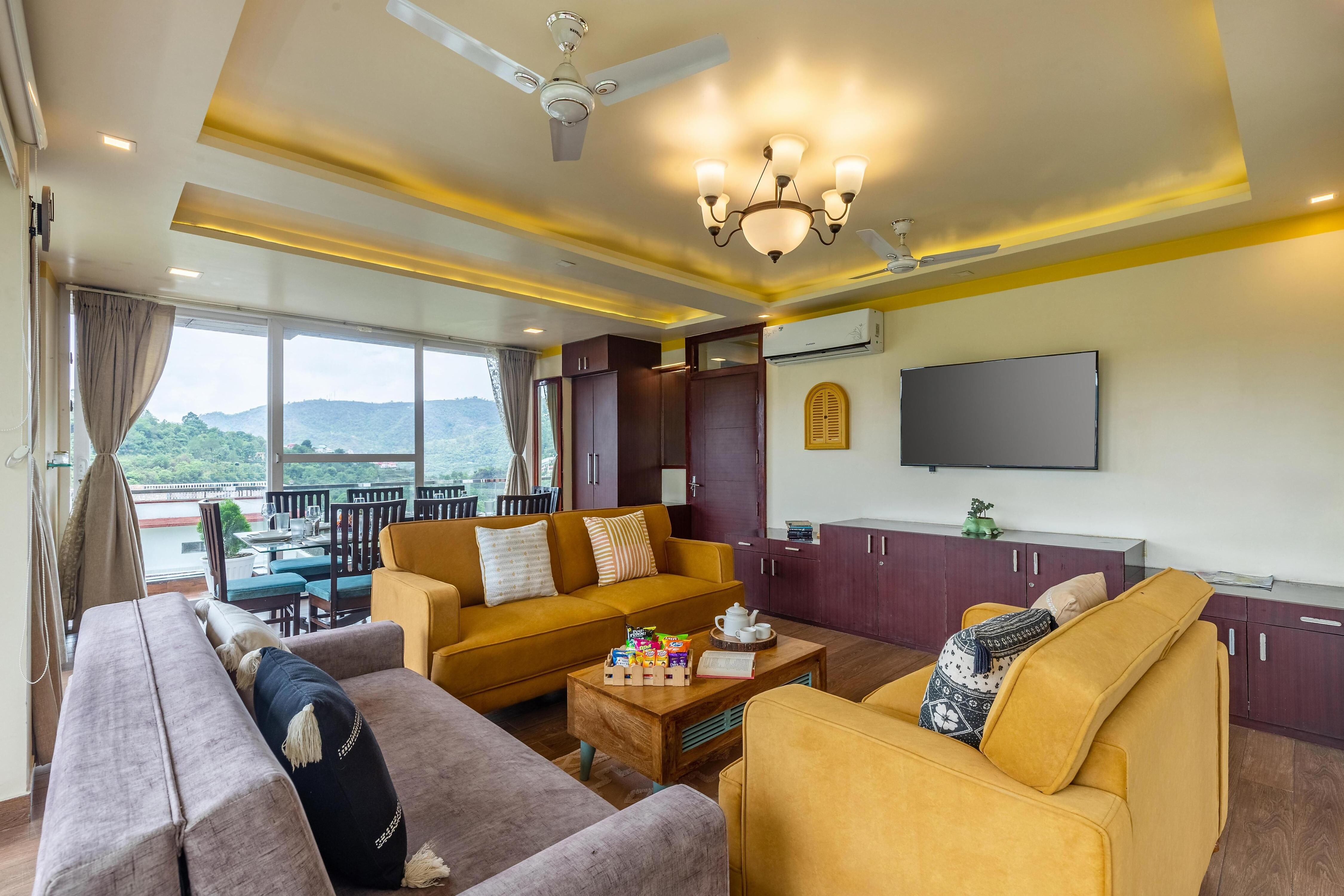 Escape to a chic 3-bedroom villa in Naukuchiatal with stunning hill views, a barbeque, a private garden and a bar for unforgettable nights. More