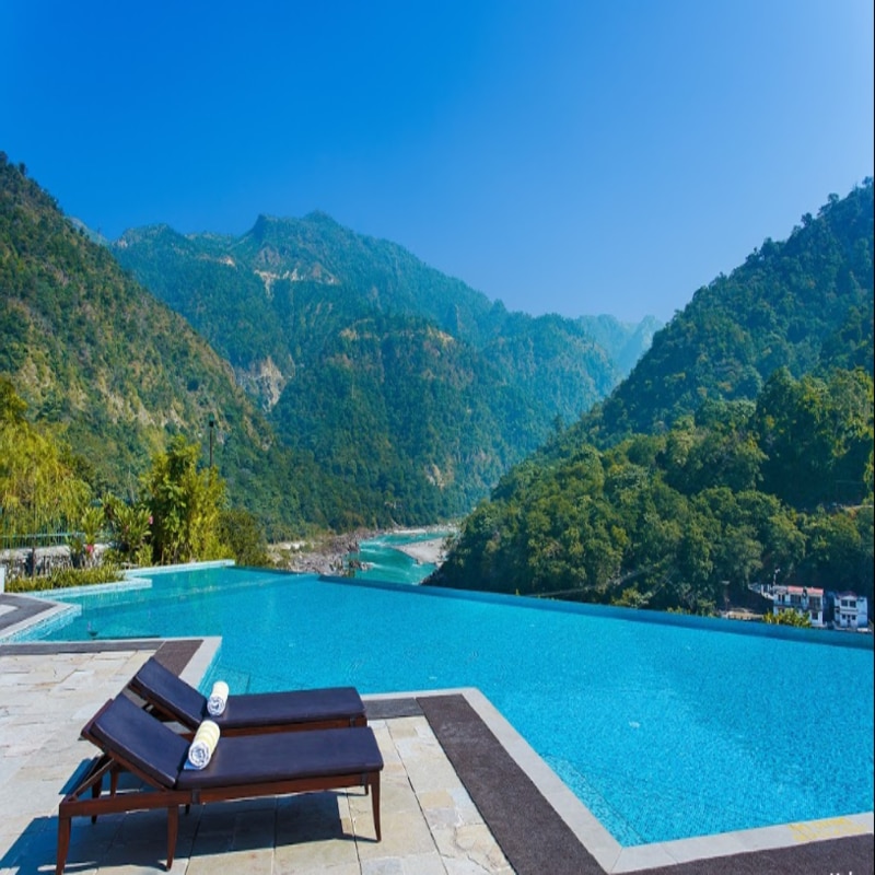 Overlooking the holy river Ganges & mighty Himalayas, this 2 BHK apartment offers a well-equipped kitchen, outdoor dining and access to a relaxing spa. More