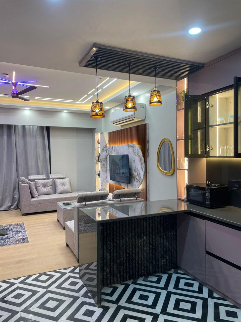 Room : 2 Adults, 1 King Bed, 1 2 Seater Sofa, 1 3 Seater Sofa, 1 Mattress
