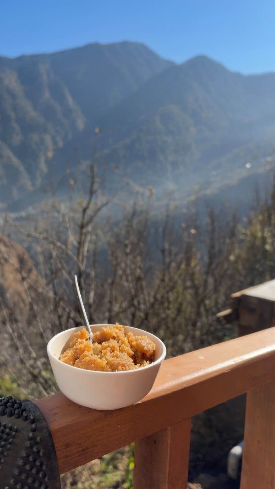 This place is near the mountain top. Beautiful location. The view is good. Wooden room. The room and the bathroom are huge. The balcony, room and bathroom get sunlight in the morning. The food is delicious. They have a small apple farm. Best room i have ever stayed in and best apple i've ever tasted.