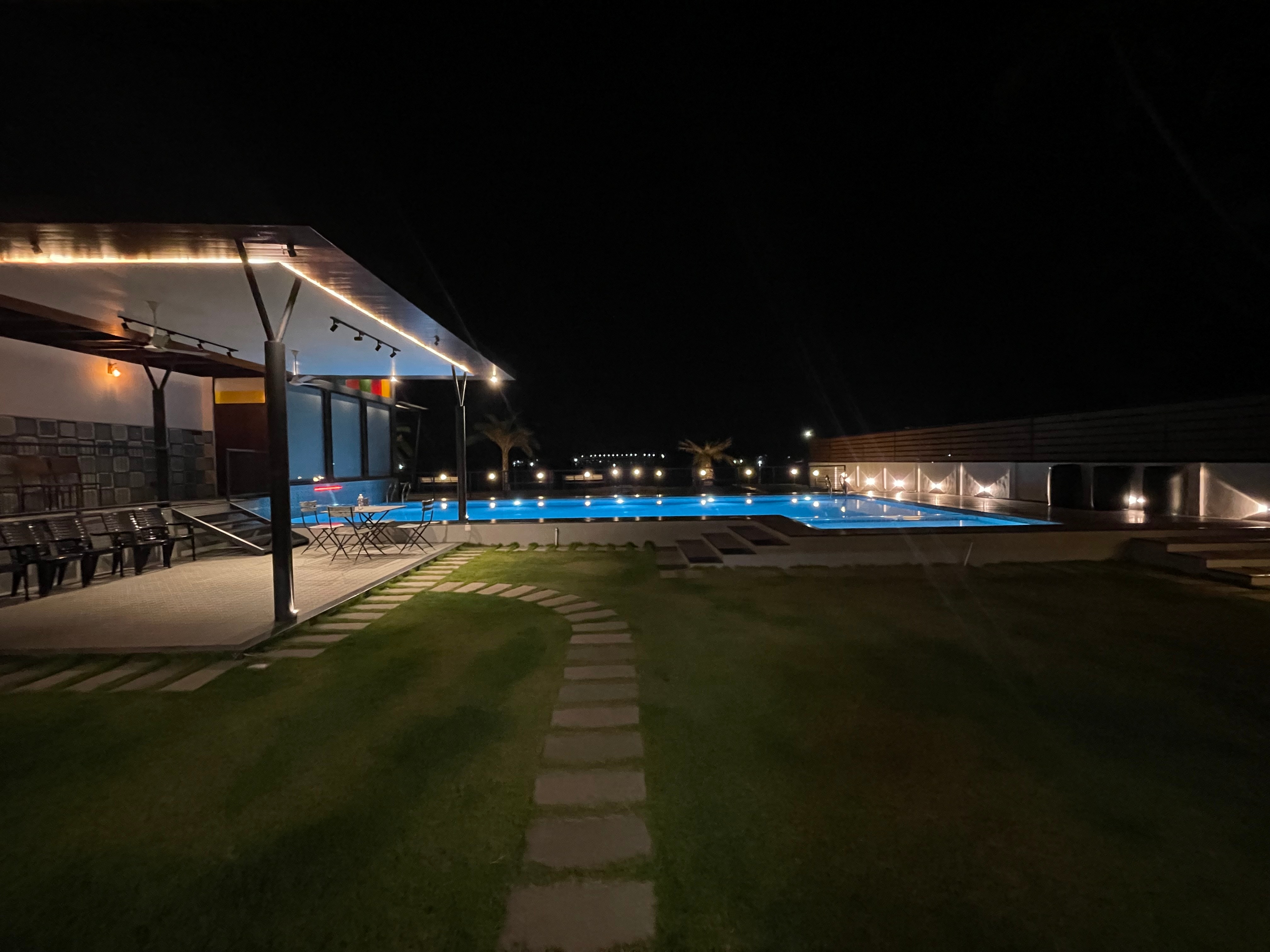 The landscaped lawn surrounding the pool is meticulously maintained, with lush green grass contrasting nicely against the paved ...Read moreLogin to unlock deals & manage your bookings!