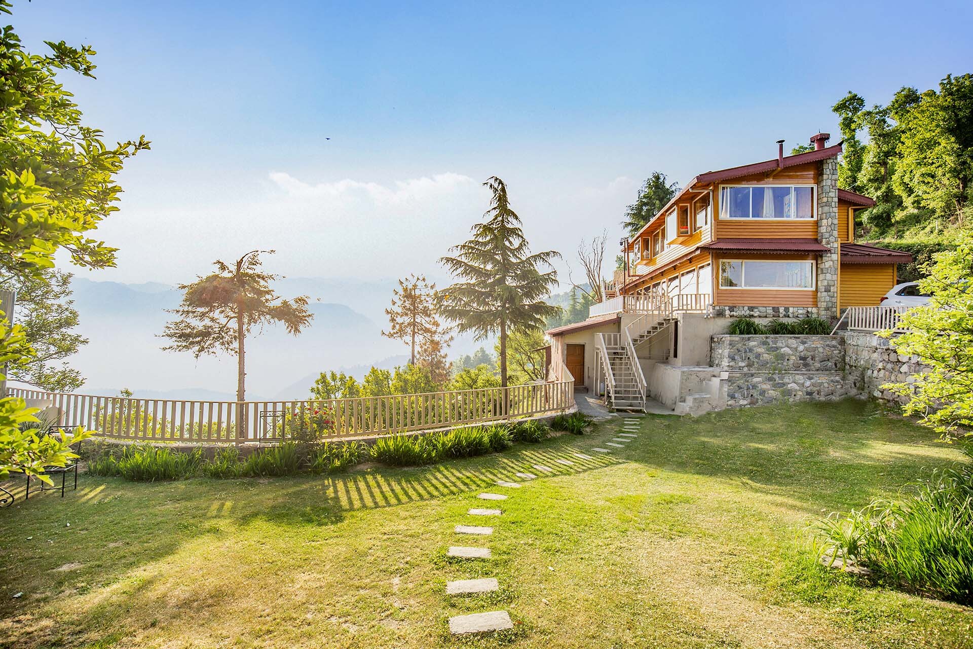 Bless the vacations with the prodigal charm of the snowy mountains, the luxury of a spacious balcony and the blooming jungle trails, with a stopover at 5 BHK Cottage Overlooking Himalayas in Kanatal.