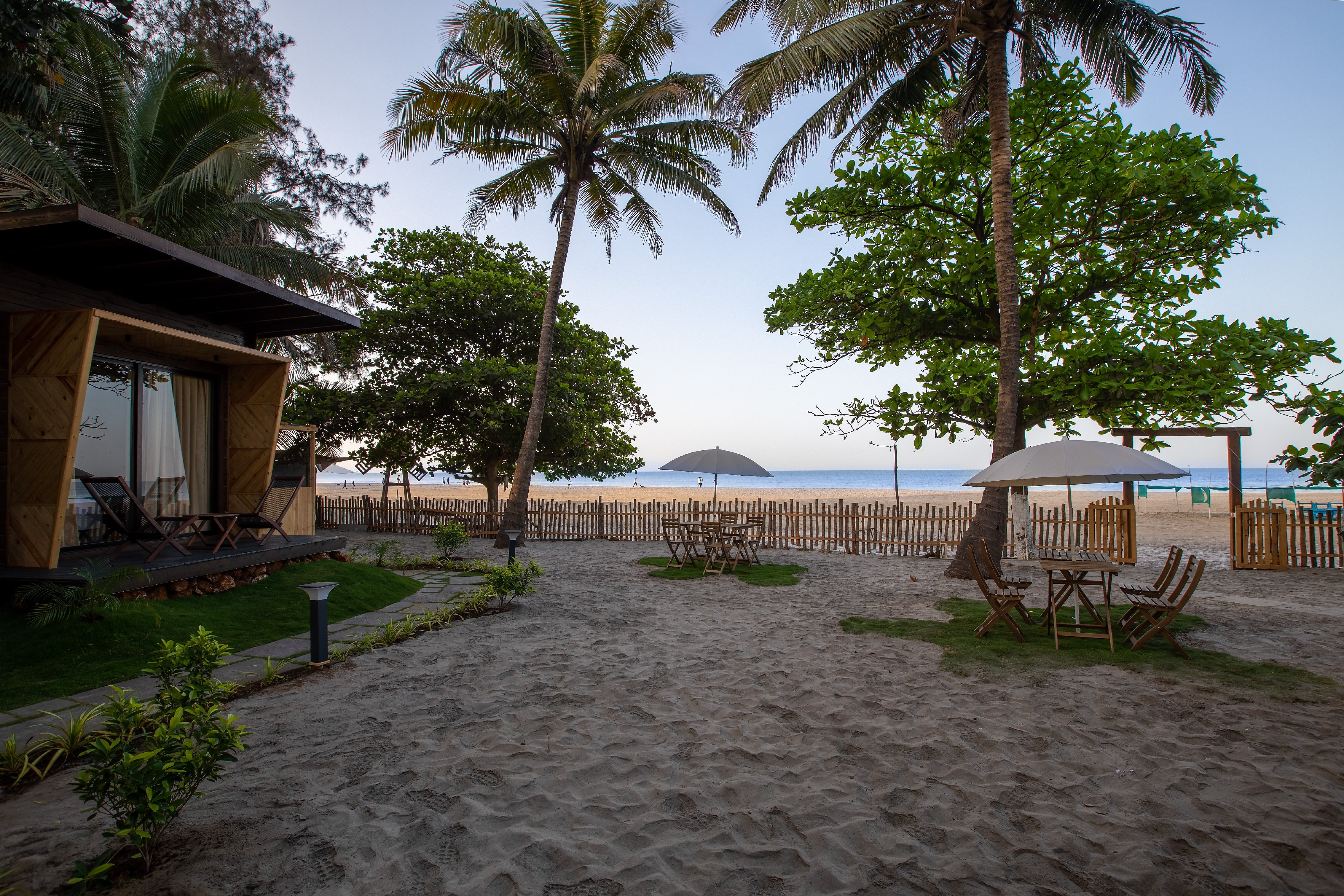 About a minute walk to Morjim Beach