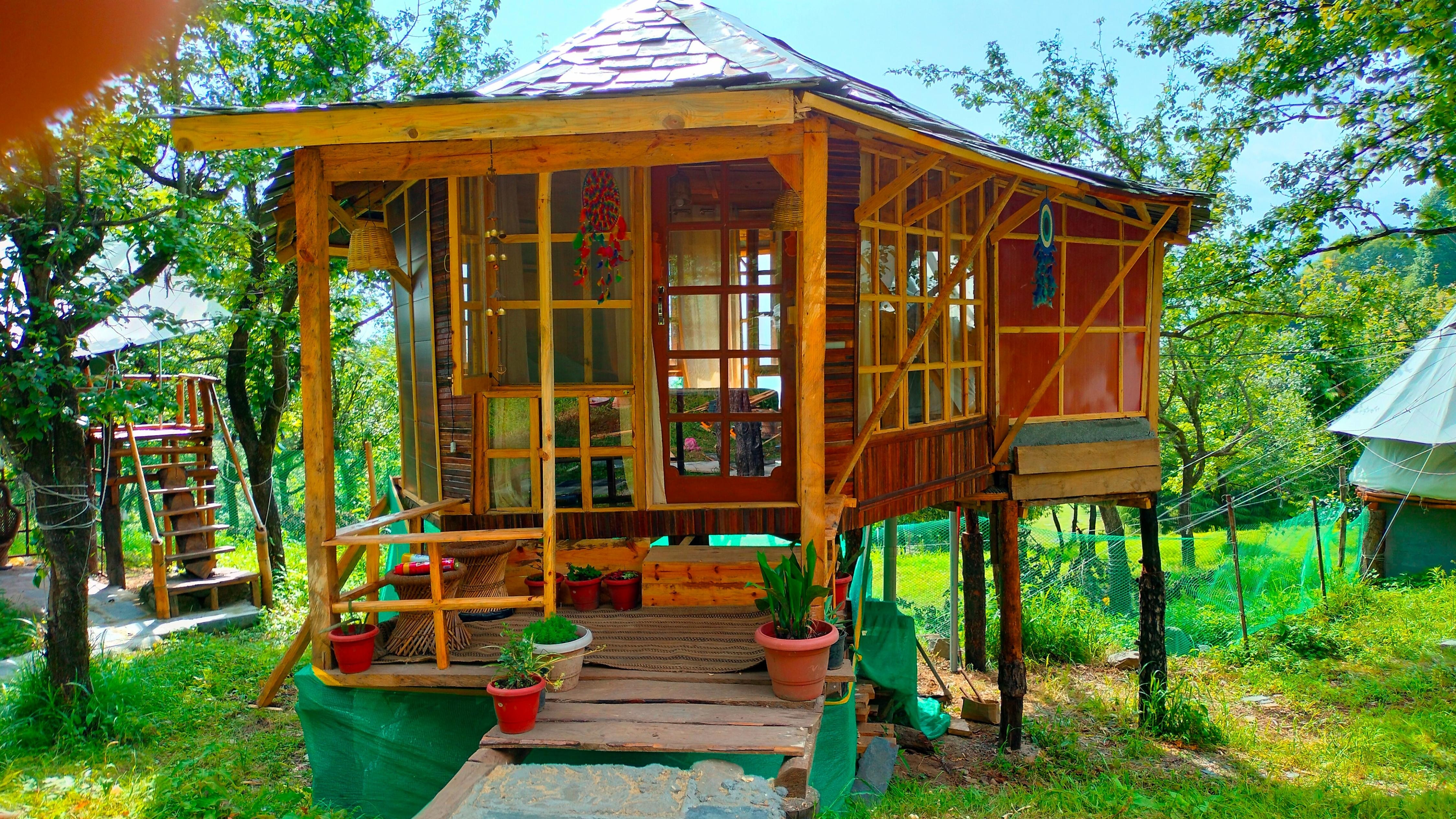Rooms in a camp offering BBQ, bonfire, guided treks & lawn