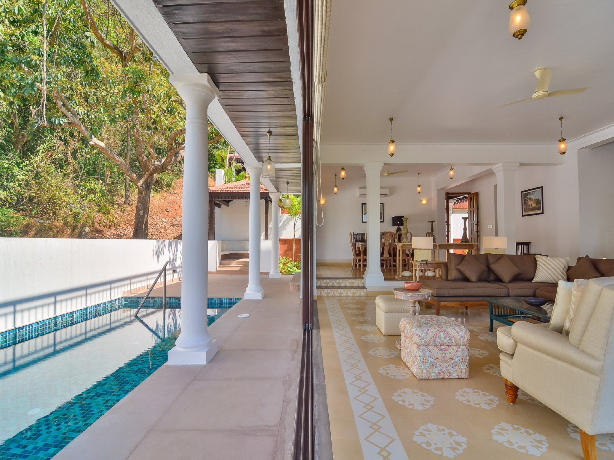 Exquisite three-bedroom luxury villa, with a swimming pool and cabana, located close to Candolim Beach. More