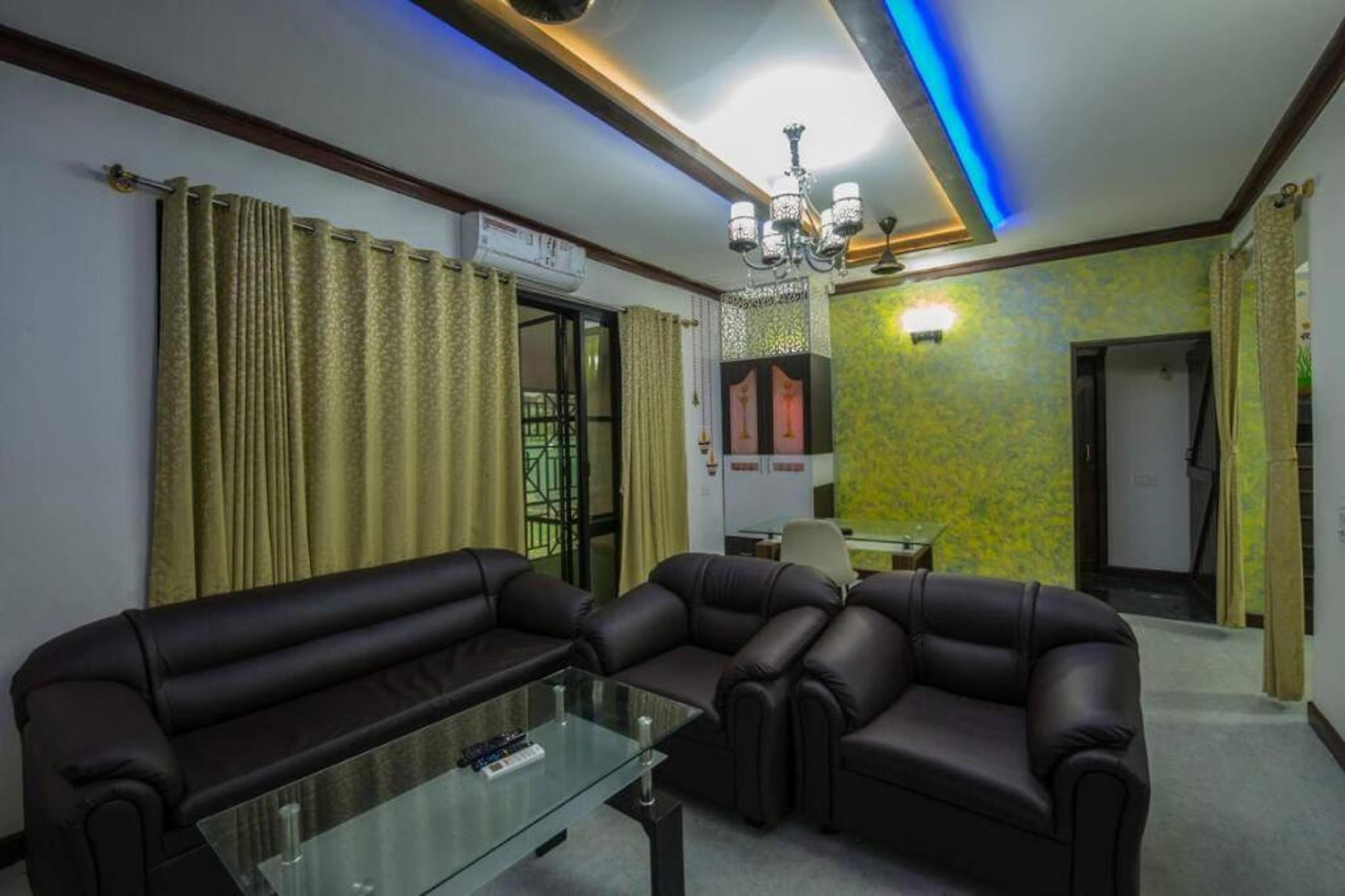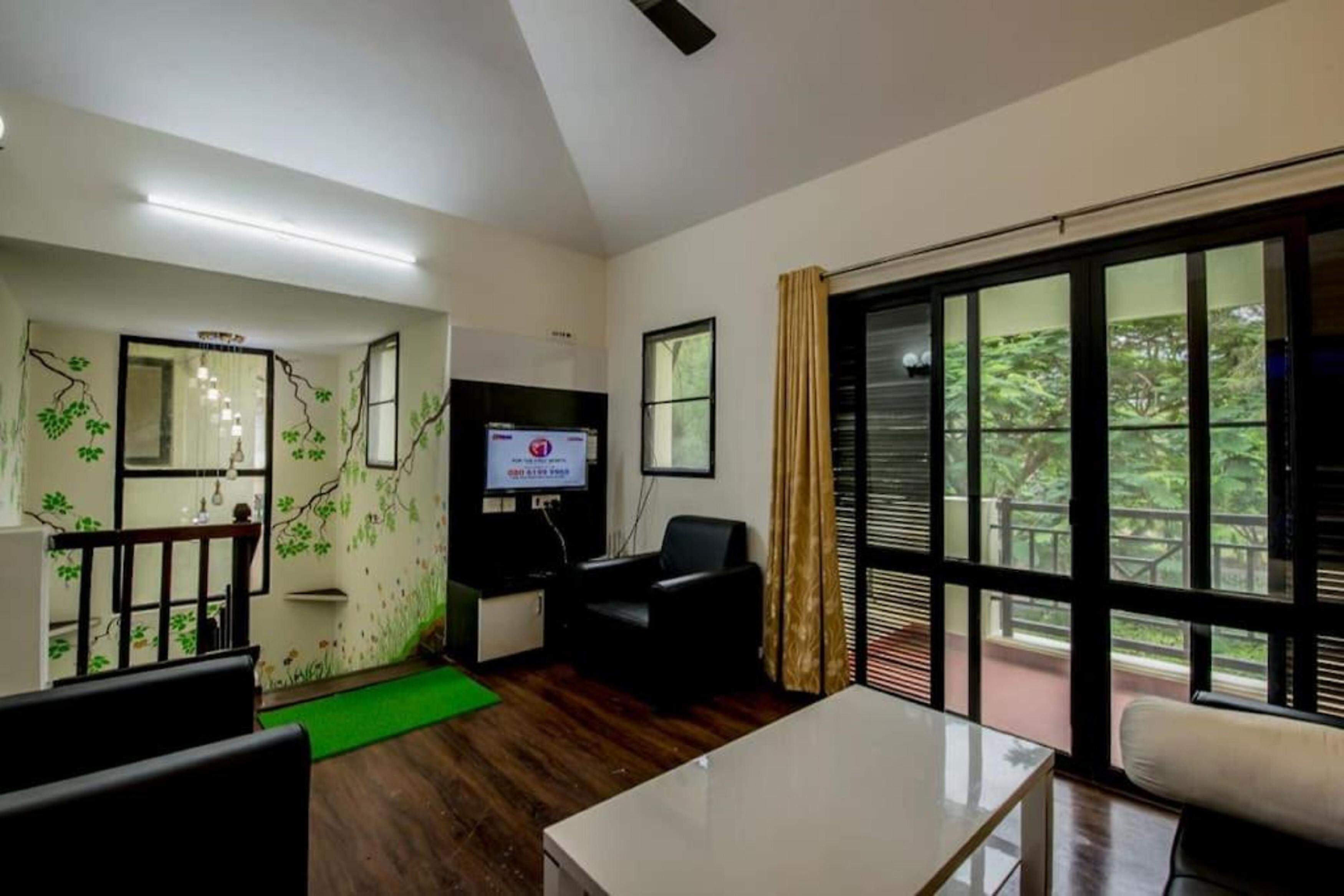 Entire 1 BHK villa offering a kitchen, living room, lawn & parking