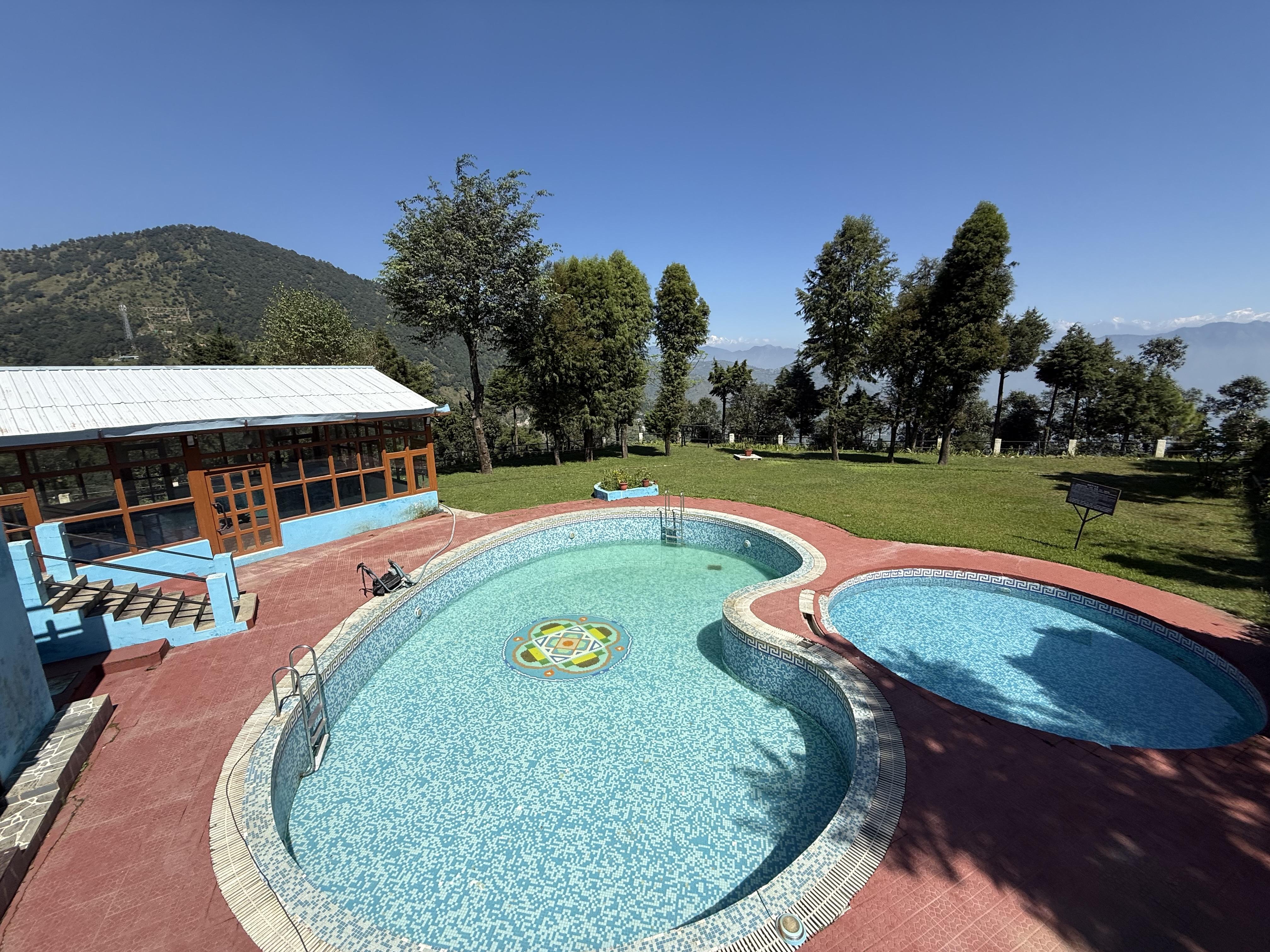 Overlooking the verdant mountains, this opulent property features comfortable rooms, a dining spot, an outdoor pool and a host of modern amenities. More