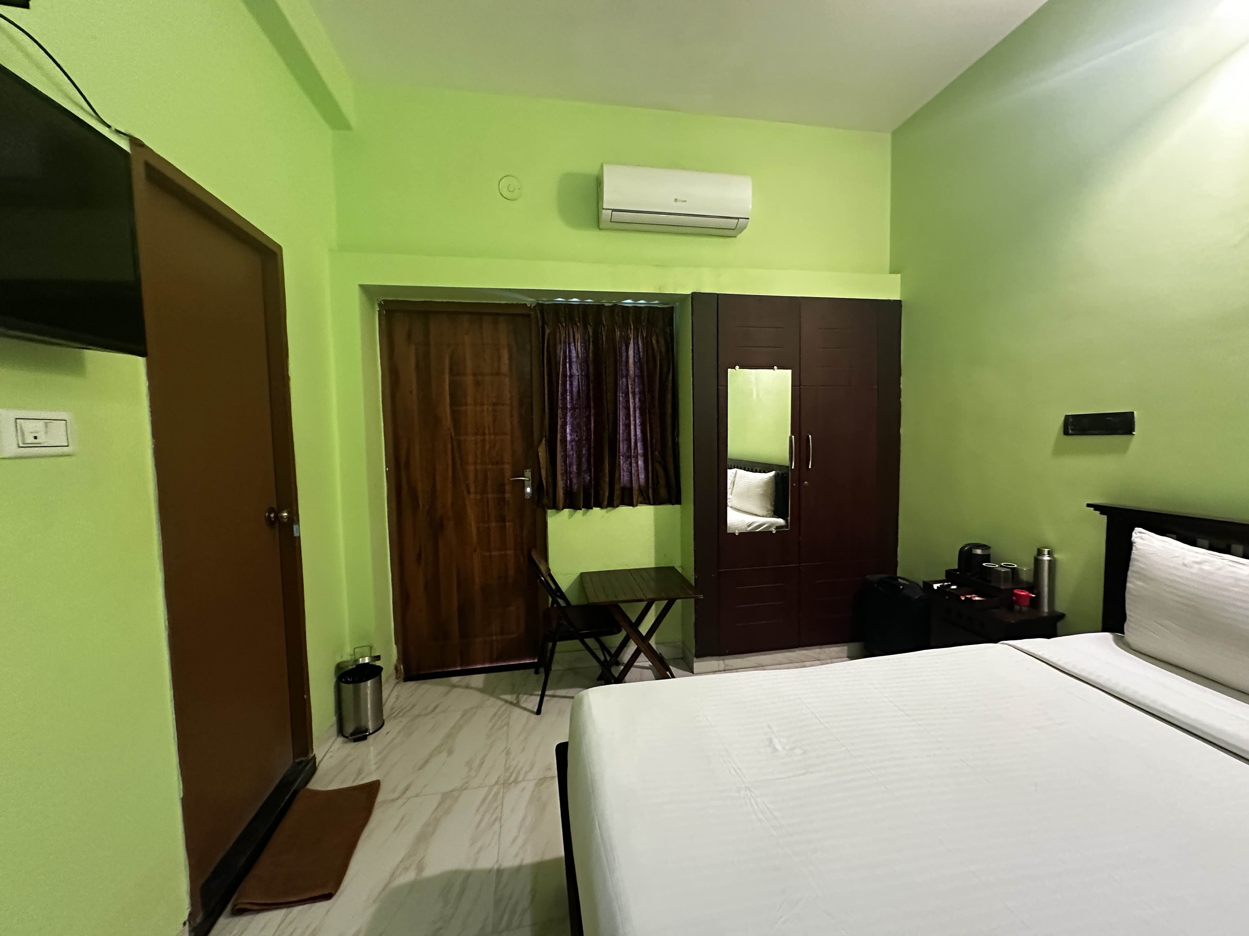 The property was clean but a bit tricky to identify on the map for auto drivers due to its geographical positioning. AC was not in full blast. Shower was not in full force. But complimentary breakfast was good . Area look to be safe. It's closeness with matuthavani omni bus stand is an advantage. Not happy with the Orange bulb all over the property - prefer white light. They can also arrange for coffee on the house instead of the tiny sachets , to make it a more enjoyable stay. Decent facilities such as kitchen kettle and sitting area and decent attendants and workers on the property . Could be better but not bad at all .