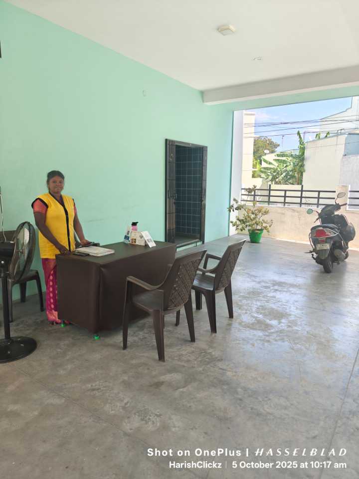 Nice stay. Friendly staffs. Tasty breakfast especially bread halwa. Car Parking. Clean rooms. Host Vijayalakshmi taking care of everything.