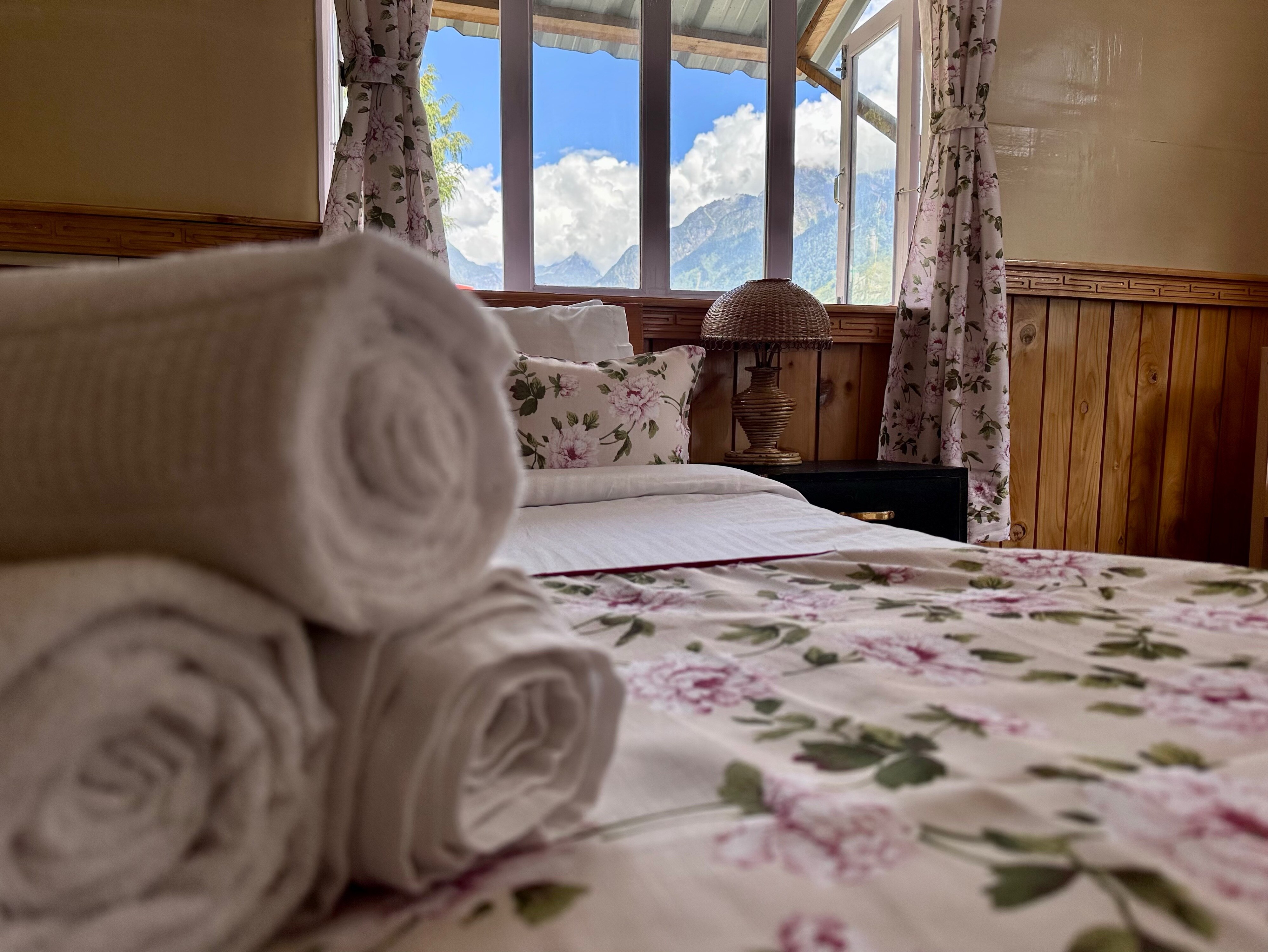 DAKSHA LACHUNG NEST COTTAGE Is a Boutique Cottage Having Bliss Mountain View From The Room Lying On The Bed. Exterior is The Mos ...Read moreLogin to unlock deals & manage your bookings!