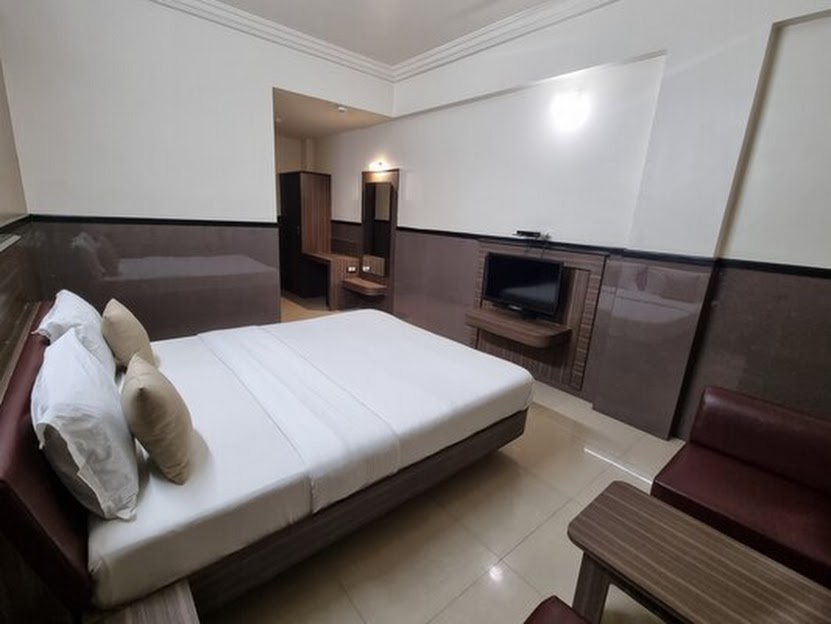 Room was neat and clean big parking space and excellent food service by giriraj dinning hall at Damji Damji Hotel compound.