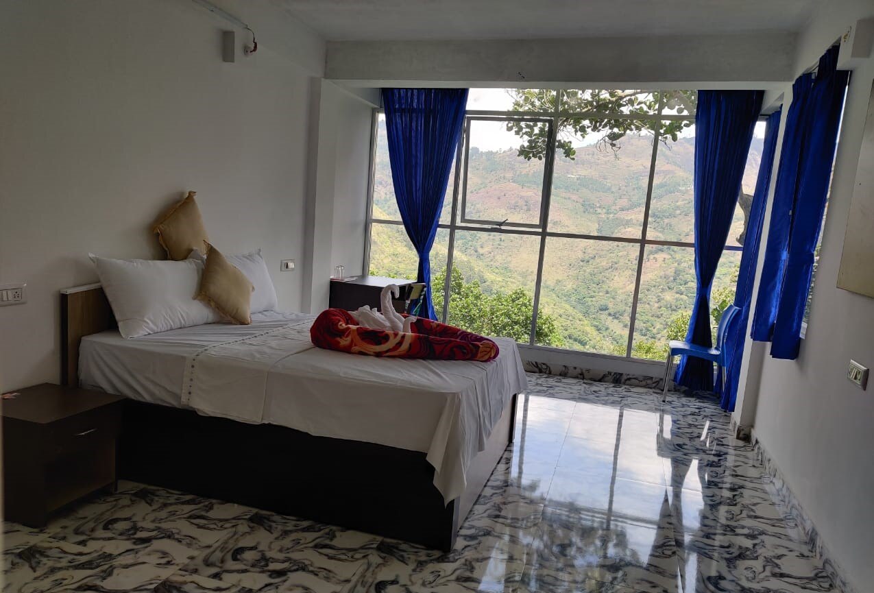 Rooms in a homestay offering guided treks, bonfire, hill views & parking