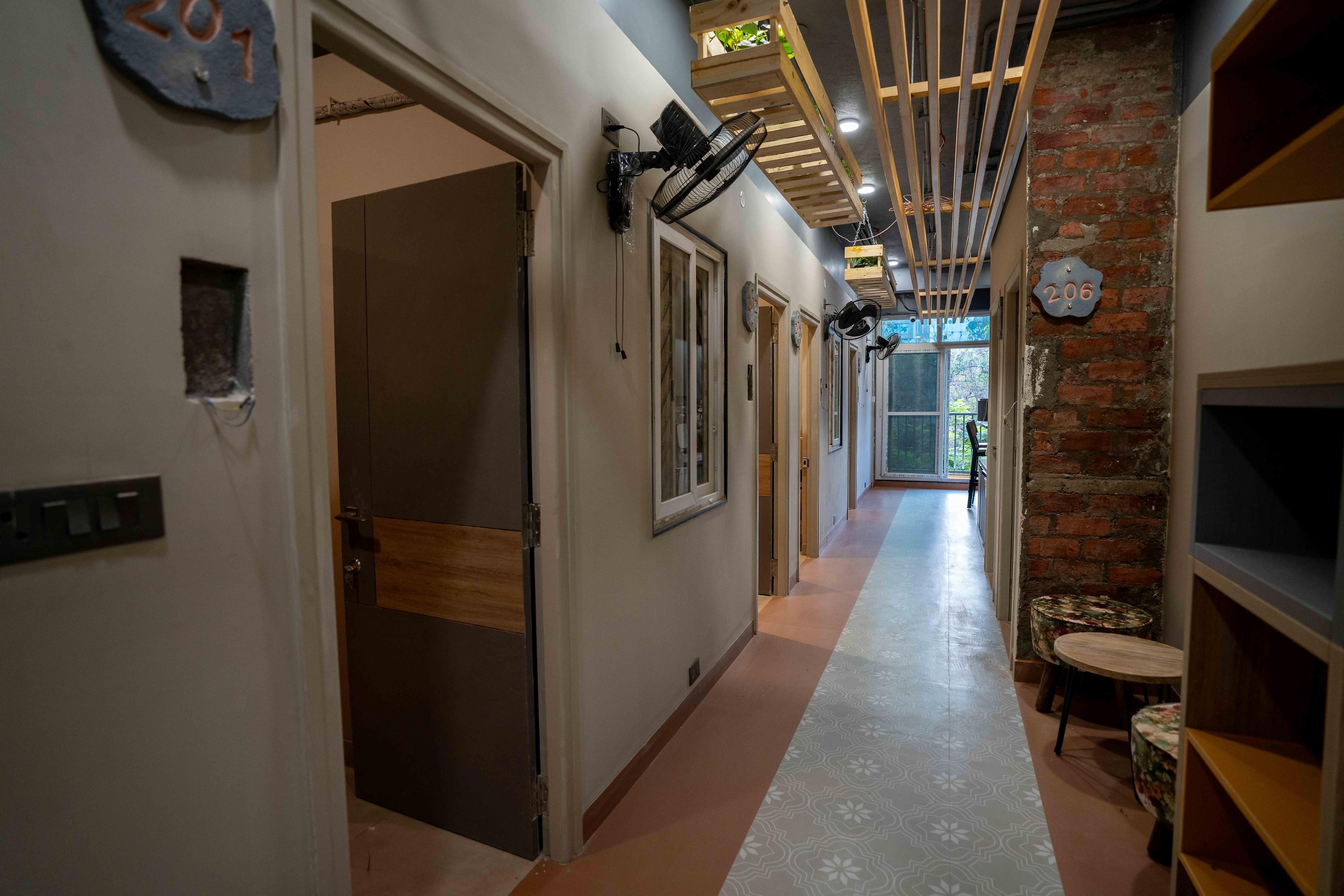 Hostel featuring a kitchen, living room, caretaker & parking
