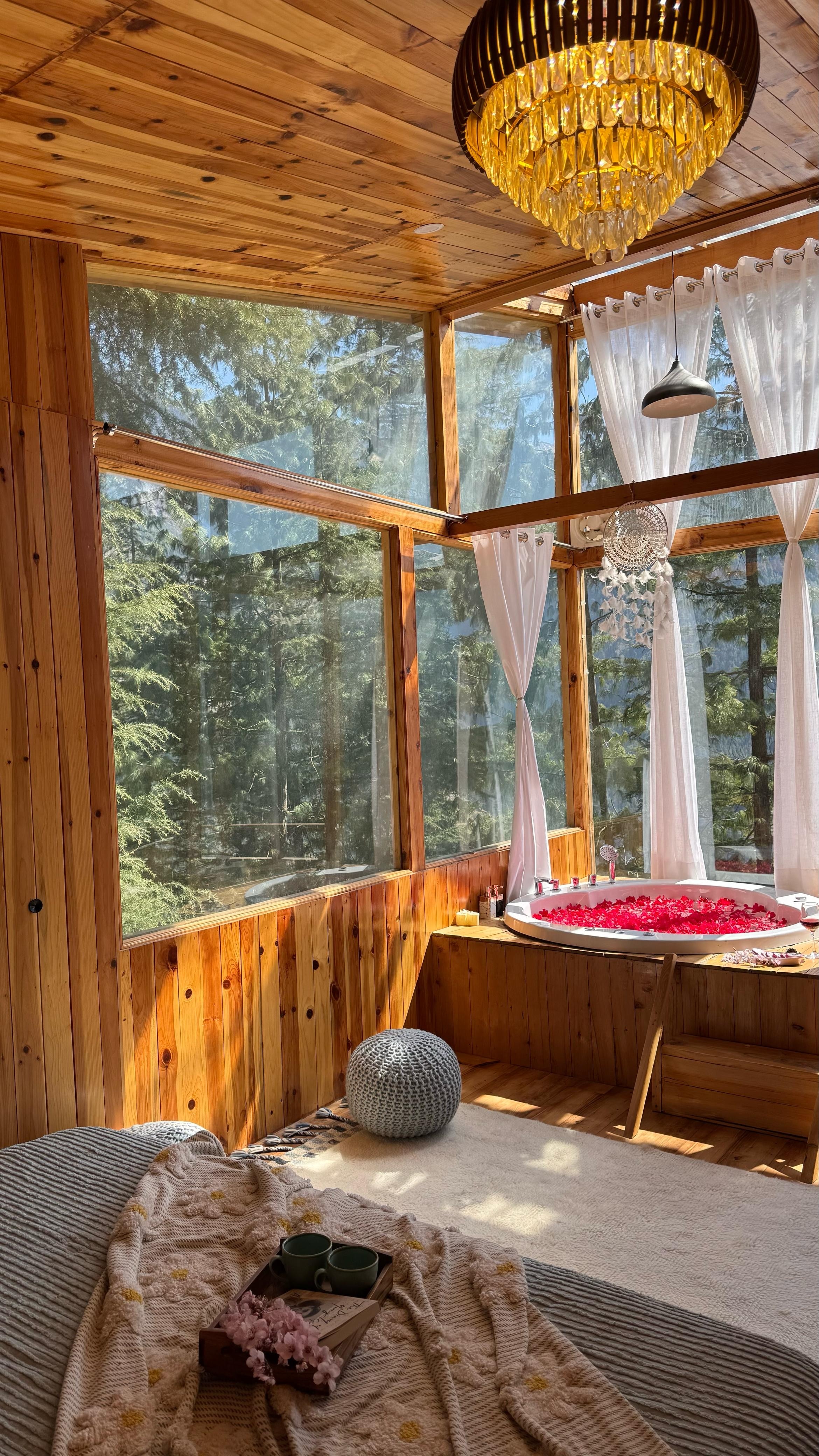Just 6 km from the Jibhi Main Market, this wooden jacuzzi cabin offers a peaceful retreat. The highlight is the luxurious jacuzz ...Read moreLogin to unlock deals & manage your bookings!