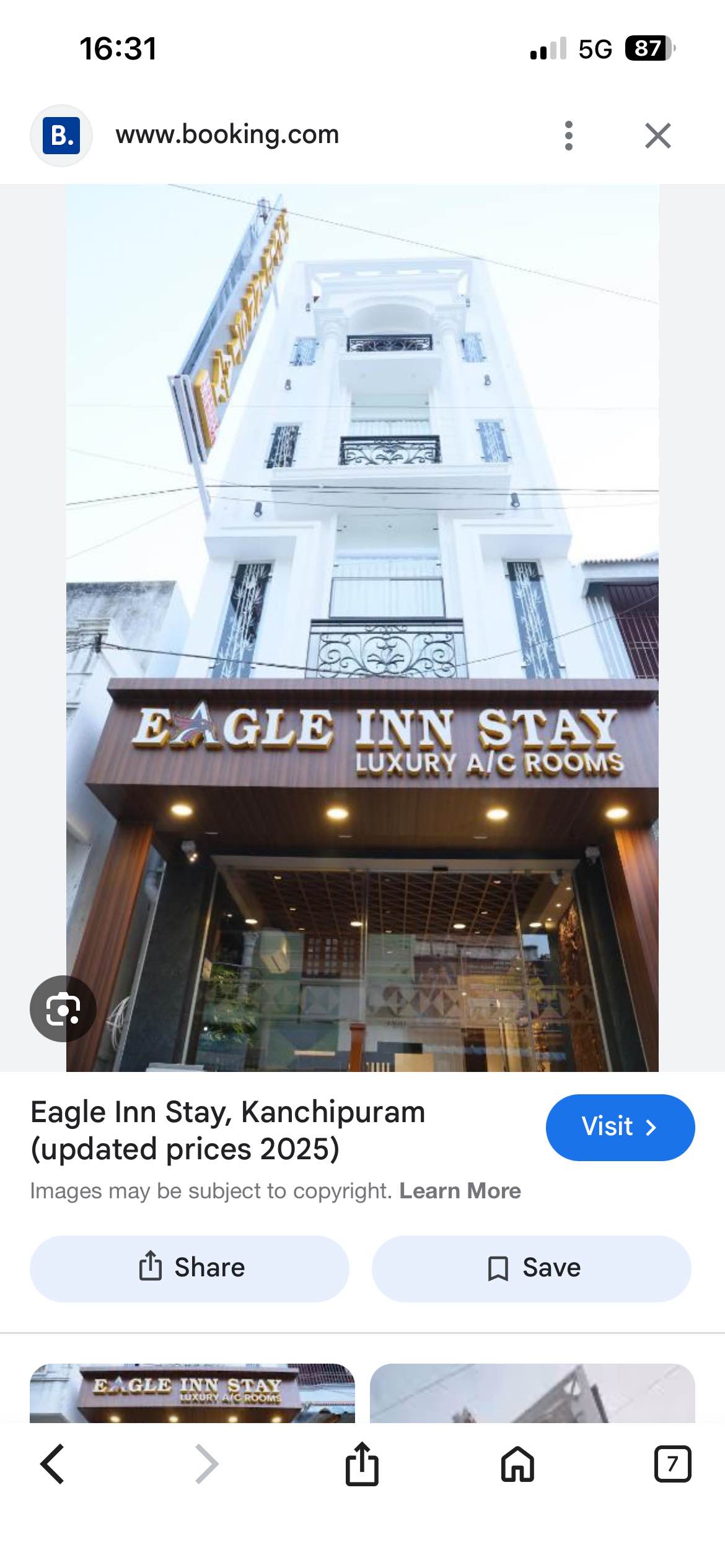 Eagle stay Inn is really good and classy hotel with good amenities and services. We stayed in Heritage room and the experience is beyond our expectations. I highly recommend this hotel for your stay on Kanchipuram