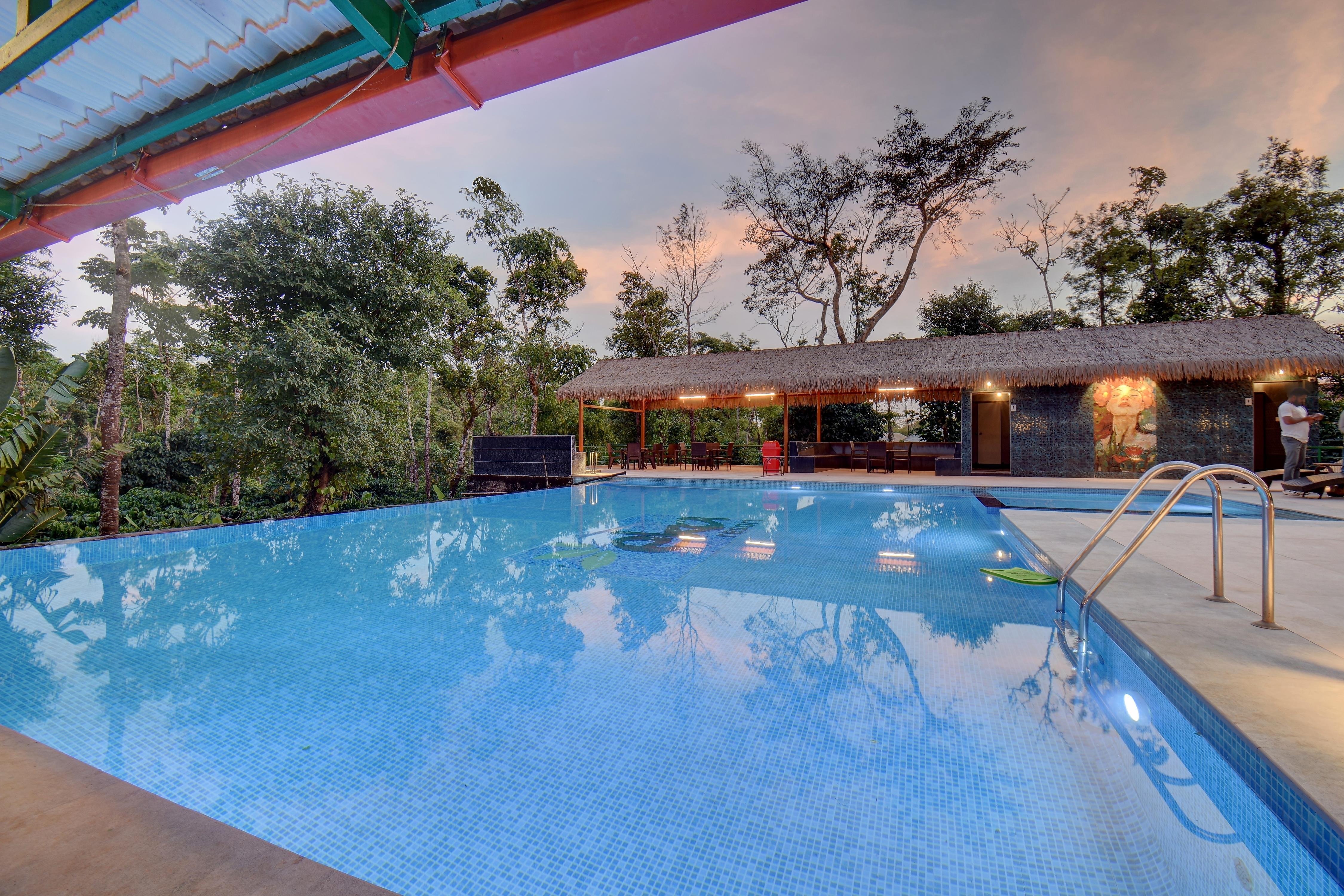 Enjoy living in modern tents by the pool at the EKA Resort Hallibyle Village, a boutique property located amidst a lush green coffee estate. More