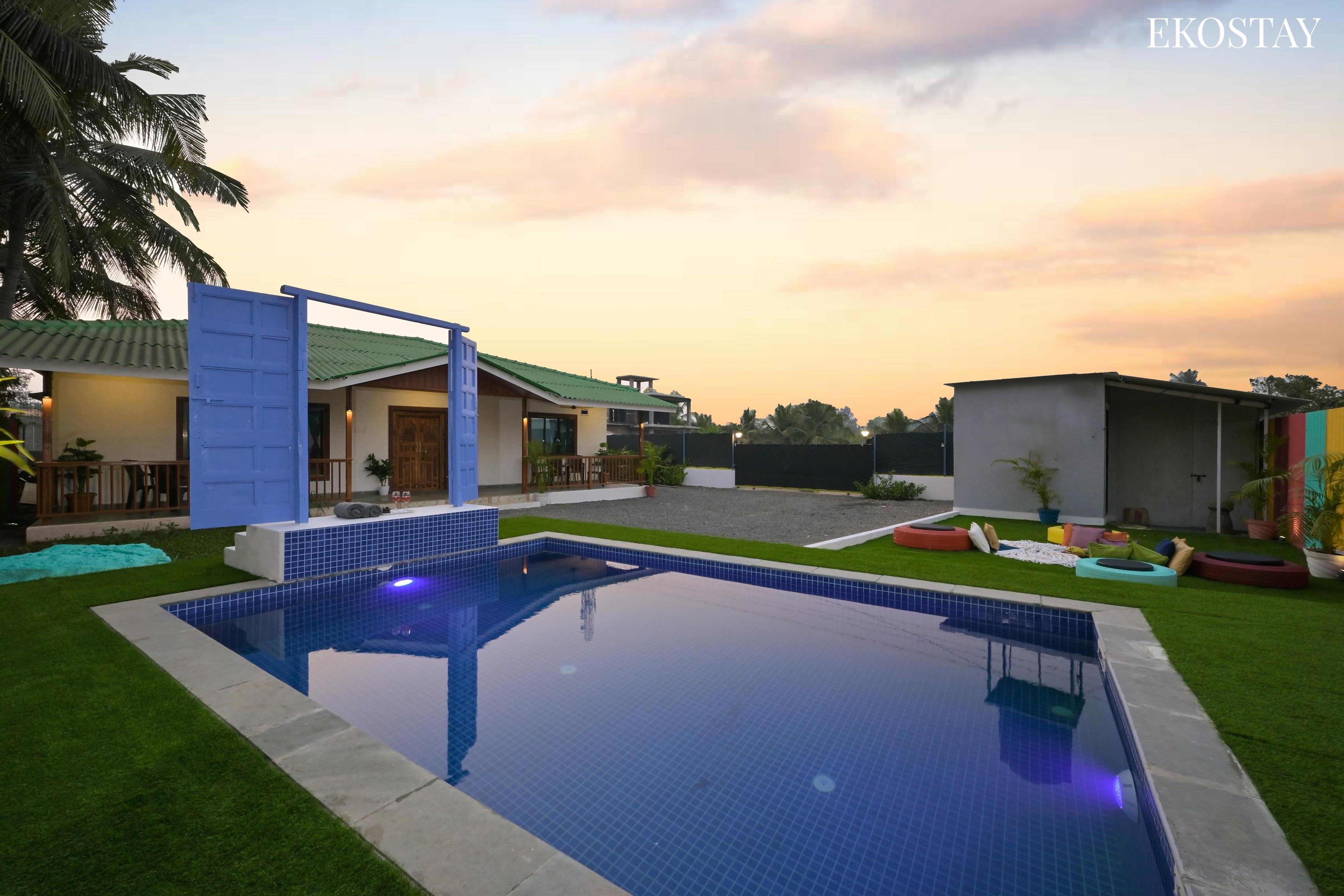 Step into the world of vibrant relaxation at the 3BHK Blue Door Villa in Alibaug. As you open the door to this villa, you'll dis ...Read moreLogin to unlock deals & manage your bookings!