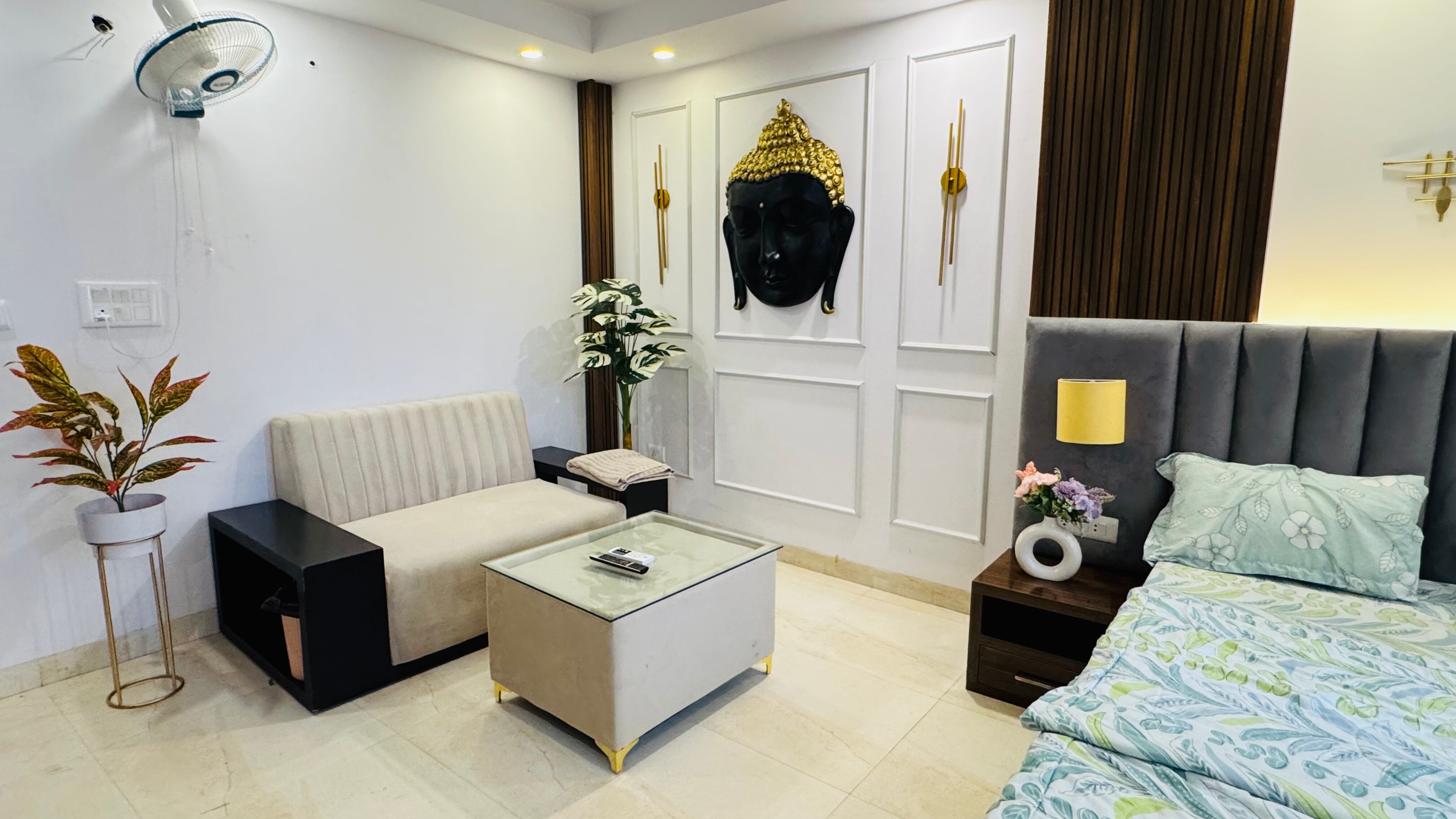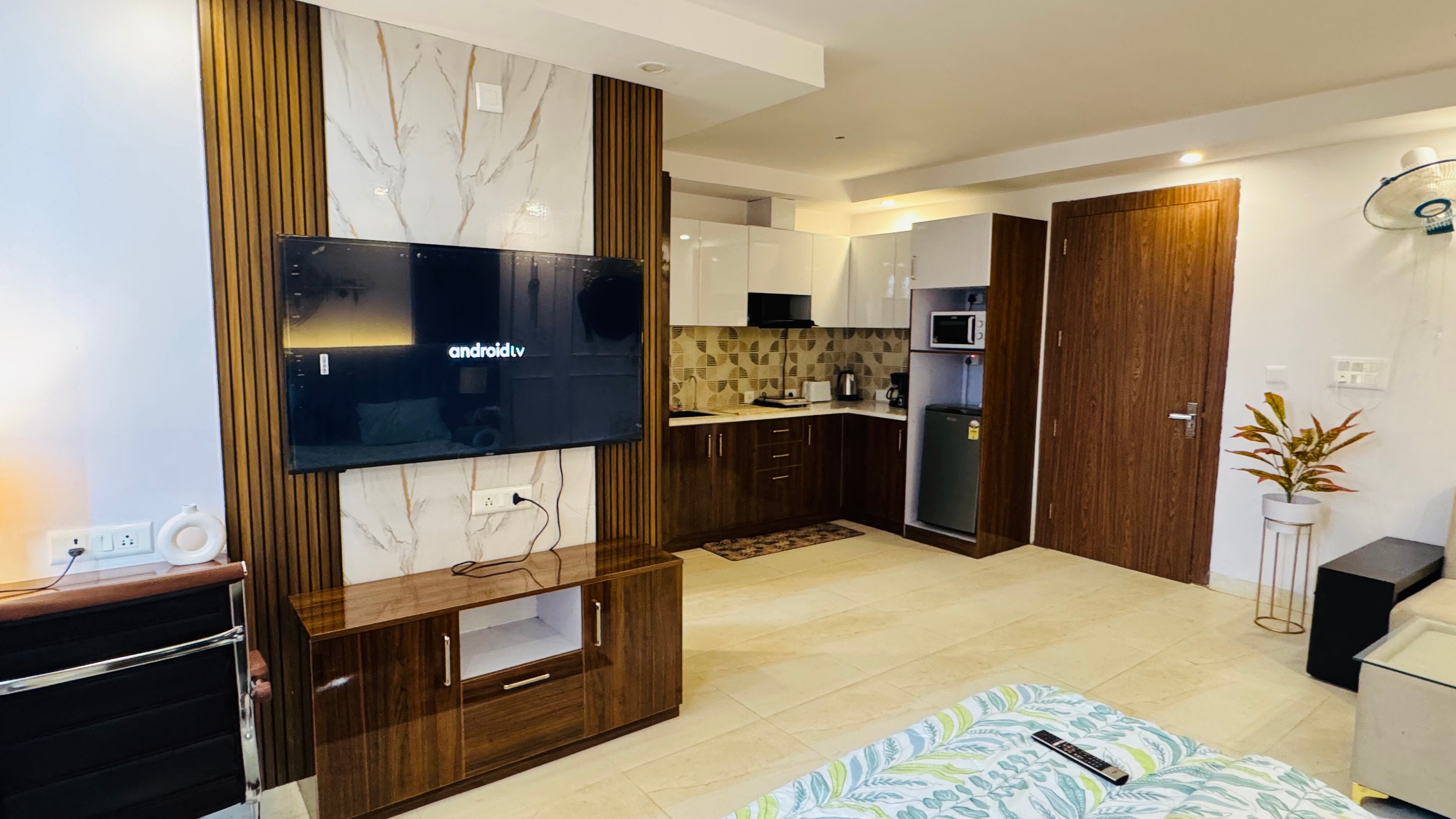 Unwind in this fully loaded studio designed for comfort & peace. Features include a smart TV, WiFi, AC, cozy king bed, modern ba ...Read moreLogin to unlock deals & manage your bookings!