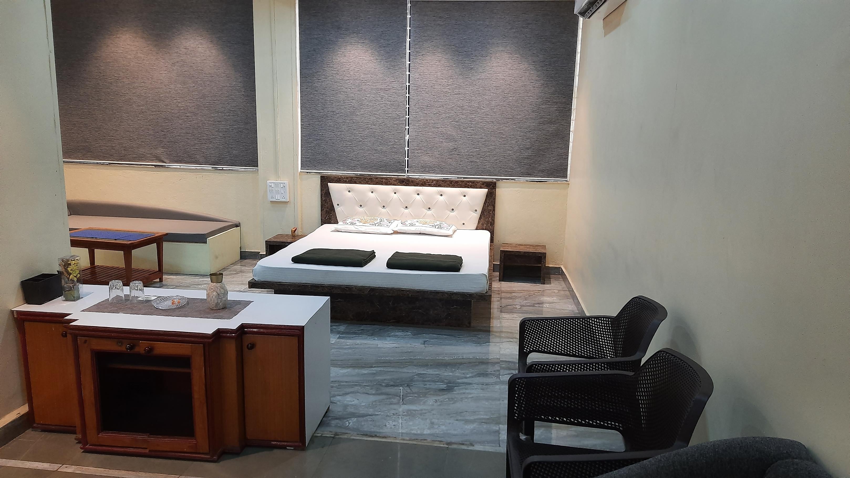 - Fine stay Samarth Lodge offers a Deluxe AC room, AC twin bed and Suite room.