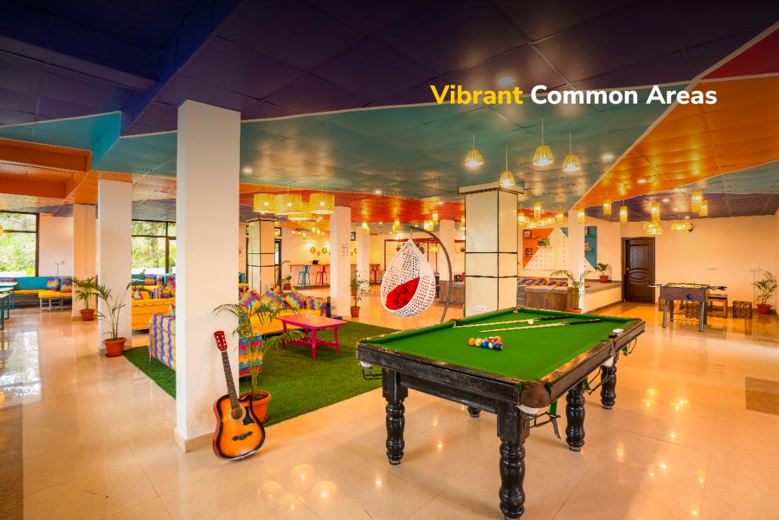 Relax at this mountain-view hostel in Mukteshwar, featuring vibrant common spaces amidst oak & pine forests. More