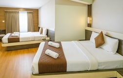 Standard Deluxe (120 sq. ft.) , Superior Deluxe (160 sq. ft.) , and Premier rooms (180 sq. ft.) are furnished with queen size beds. Executive Deluxe Room (220 sq. ft.) contains a queen-size bed and a large balcony overlooking the pretty surroundings.Luxury Quad Room (250 sq. ft.) with 2 queen size beds is fit for groups. All rooms are designed to make you feel at home with an LED TV, wardrobe, toiletries, linen and 24-hour hot/cold water supply.