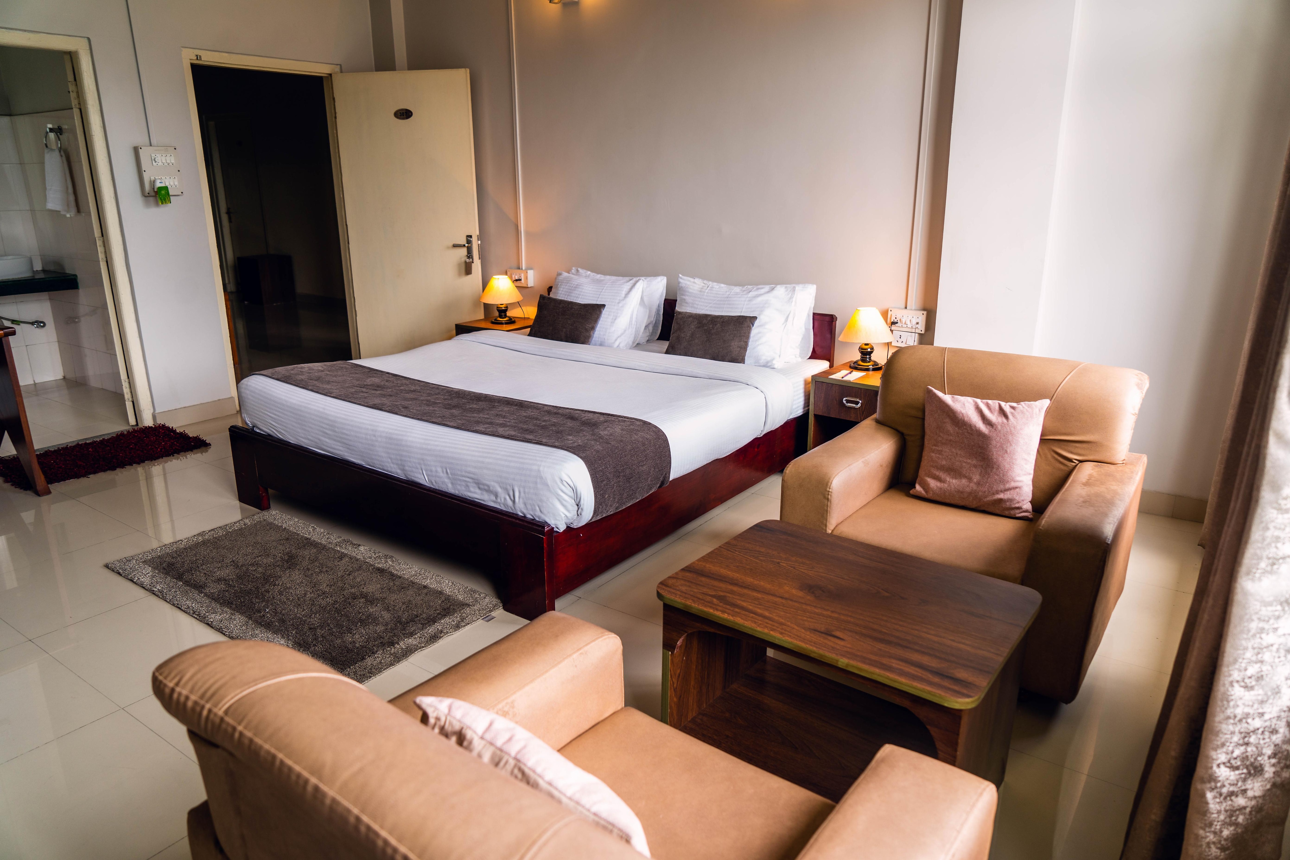 - Guests get room services, air conditioning and daily housekeeping.
