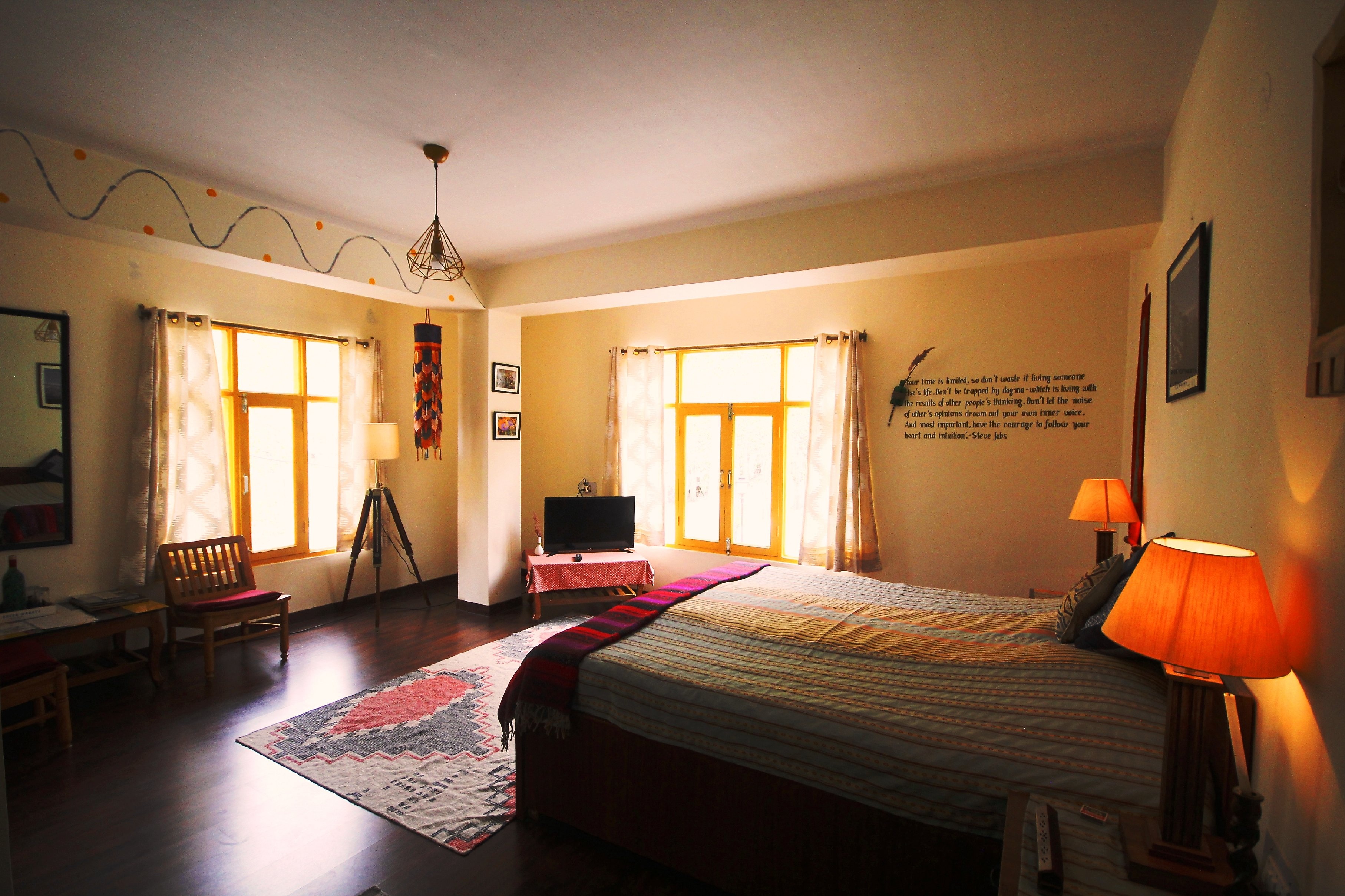 - Each room has essential amenities like a double bed, 6’’ foam mattress, bedside tables a television with cable connection.