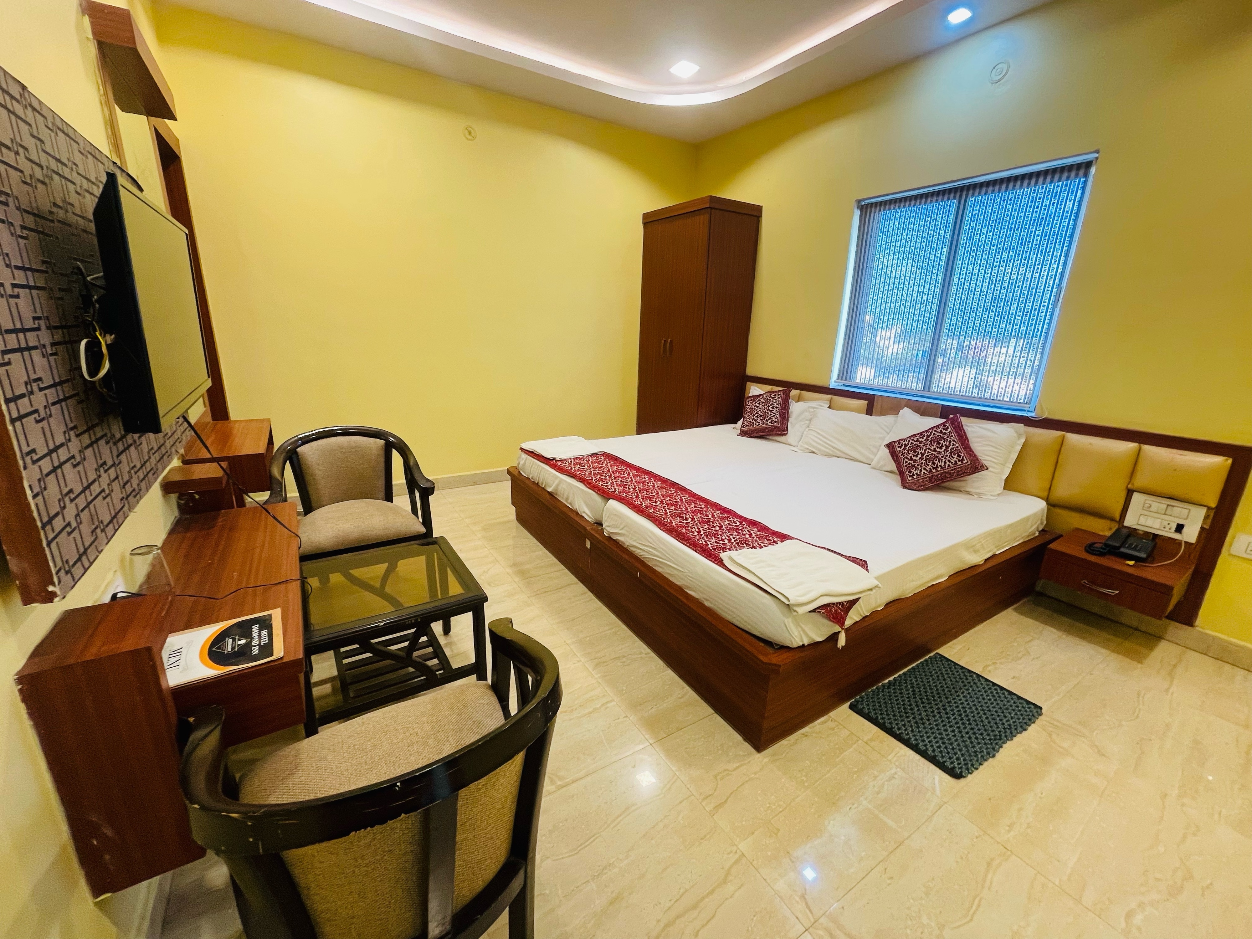 - The property features well-furnished air-conditioned Deluxe rooms with double beds and Suite rooms with king-size beds.