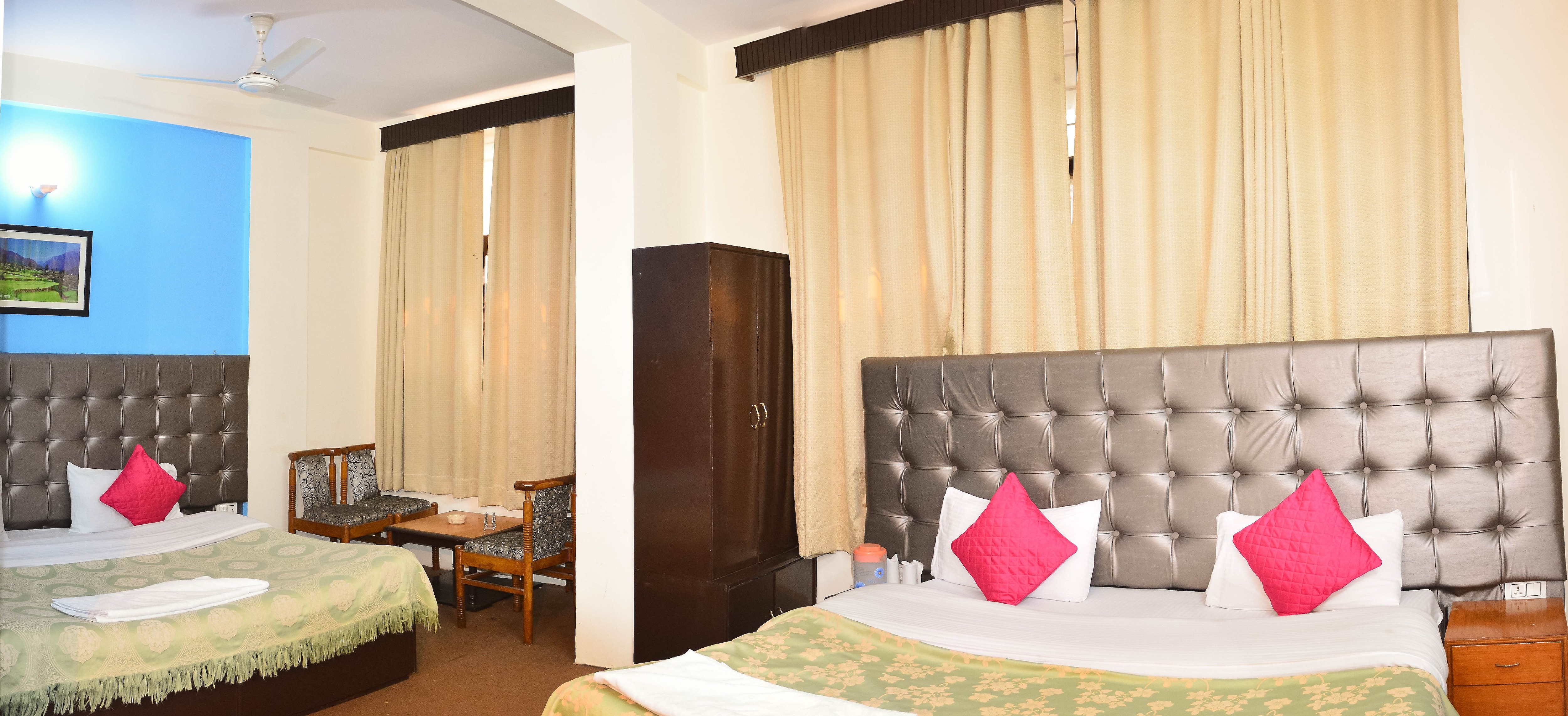 - Each of the rooms has an attached bathroom with toiletry and an attached balcony. The rooms are well furnished with amenities such as air conditioning, pillows, an intercom, a geyser, free wifi, a work desk, TV, a telephone, towels, a chair, and much more.