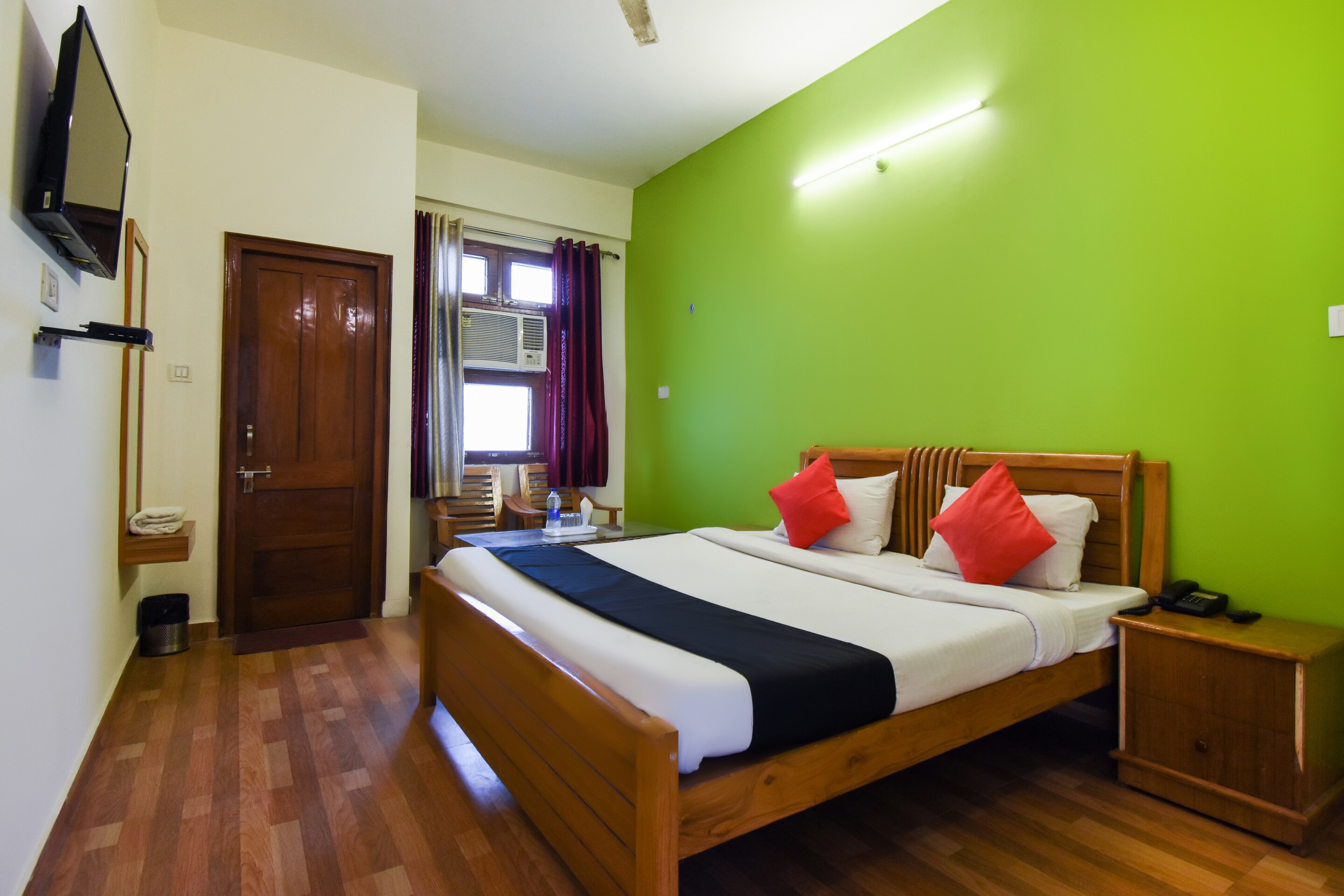 I’ll give this hotel 0 stars but it’s not possible so i am going with 1. Literally the worst hotel. It was super unhygienic, full of bad odours and so many insects were there that will ruin your stay. They don’t even have split ac or look at the tv for an instance. Ac is window and of course you’ll want to use it but either you can choose ac or use curtains. See the image i have uploaded. Also the bed sheets were dirty and there was an extra used mattress on the floor which they didn’t even bothered to pick up. They won’t sanitise or clean the room for your stay. You won’t be provided with any complimentary water bottles or amenities. Just 2 cheap 5 rupees soaps. Also, halls are dirty and filtered to show how beautiful the property is. The mattress they provide you with are like the cheapest quality ones and the bed sheets are so itchy like super horrible. Agar kahi rehna hai, please don’t stay here. Pay an extra 300-500 but don’t stay here. You will regret for life. I have so many bed bugs bites or id k what they on my legs right now. Na me soo pay a roshni ki wajah se itne and ink a ac also is super noisy and it works on one temperature only. You make it 16 degrees or 25, you’ll feel same.