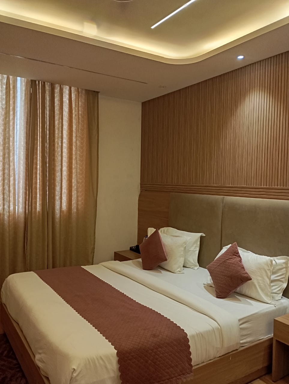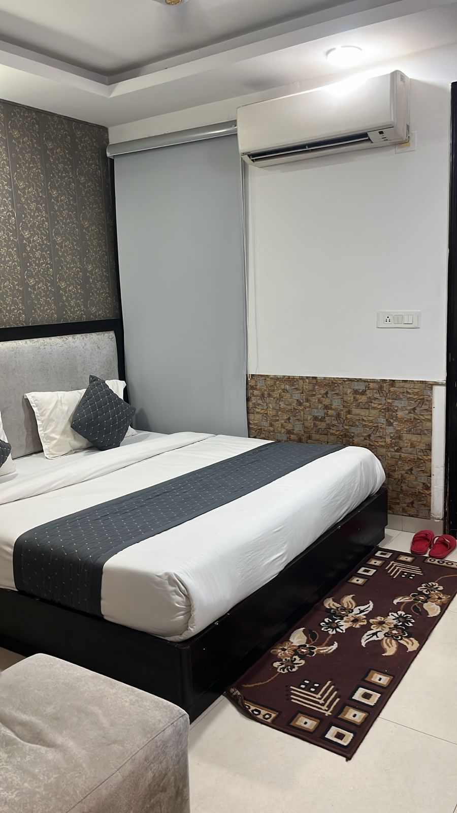 booked deluxe double room with guaranteed late check out option. Room provided was very cramped, nowhere near the size mentioned on website, without any window or any kind of ventilation. felt suffocating on entering. AC was installed but controlled from outside which they turned on after complaining. They were also reluctant to provide late check out option but eventually agreed. okay for a budget stay if you get a deal at 1000-1500 and don't mind above issues.