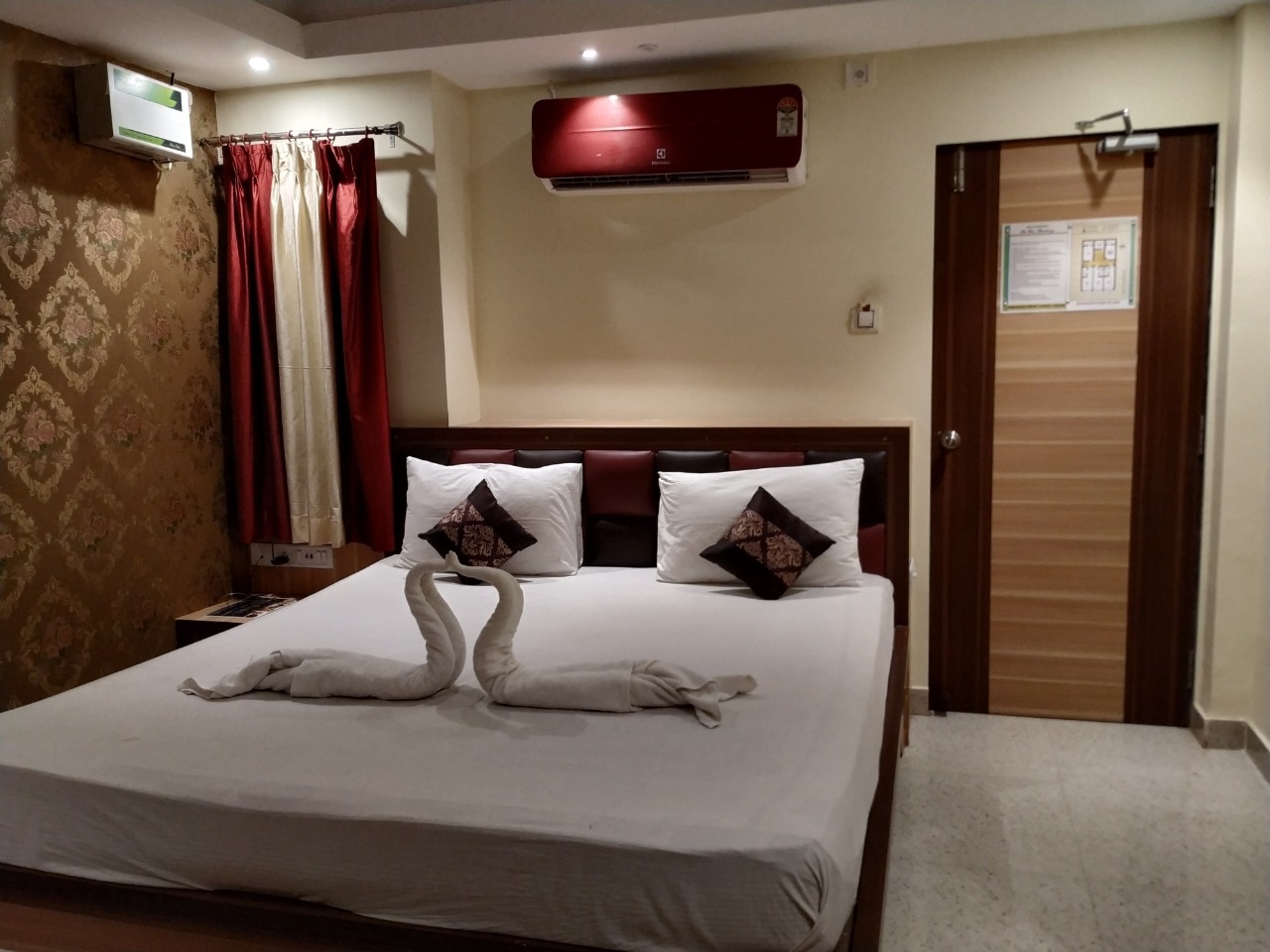 - Each room has an attached bathroom, TV, DTH, geyser, desk, wooden chair, in-room dining, housekeeping and round-the-clock room service.
