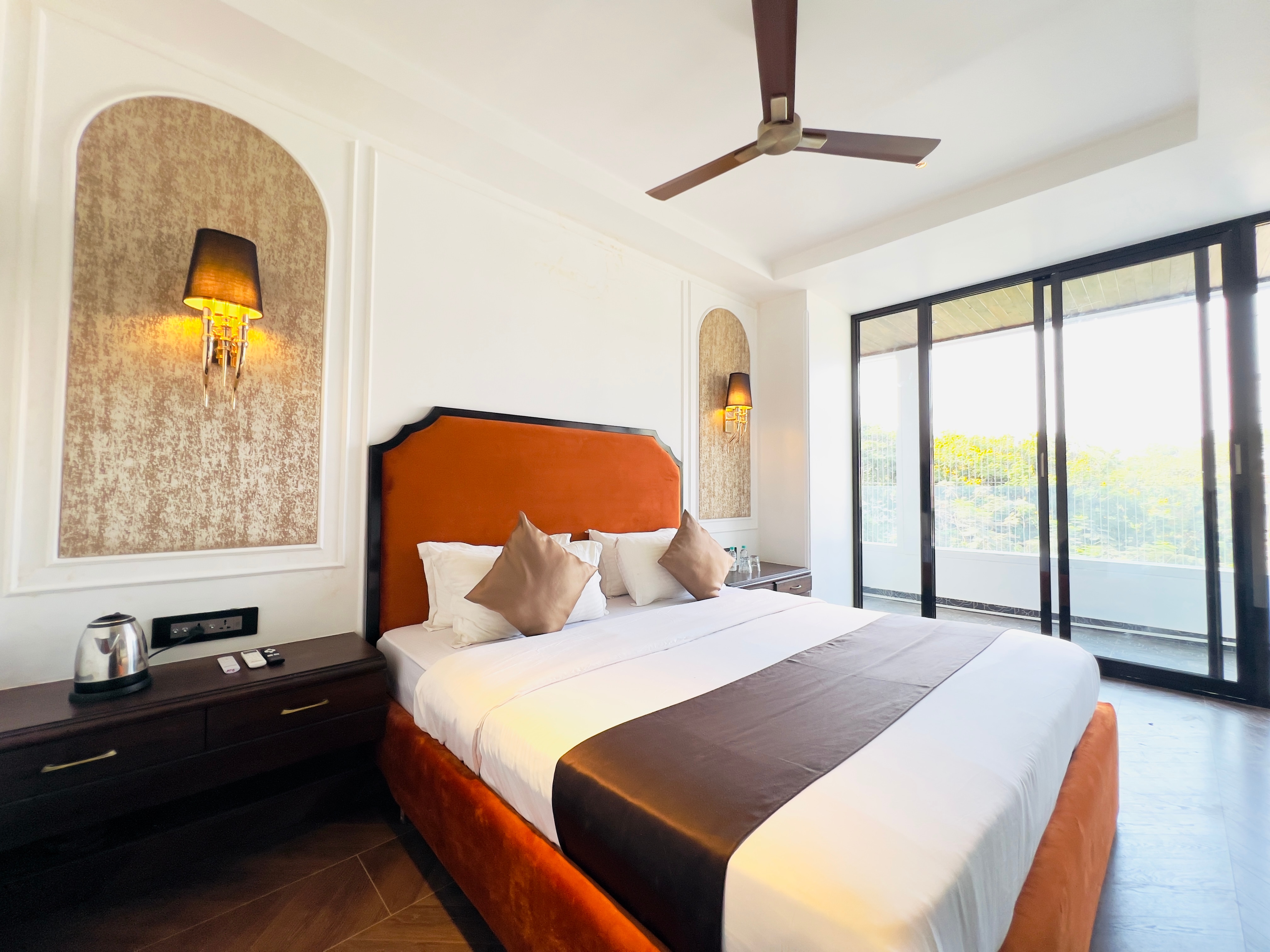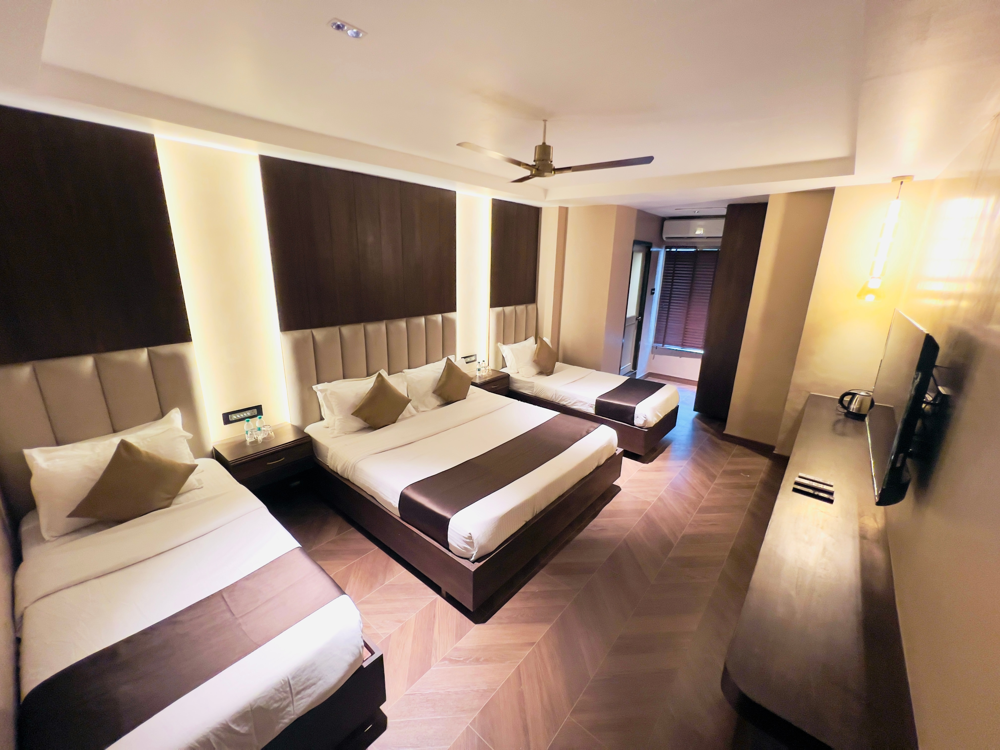 - The property offers Non AC deluxe room (225 sq ft), Deluxe room (225 sq ft), Superior room (300 sq ft), Triple deluxe room (324 sq ft) for guest accommodation.