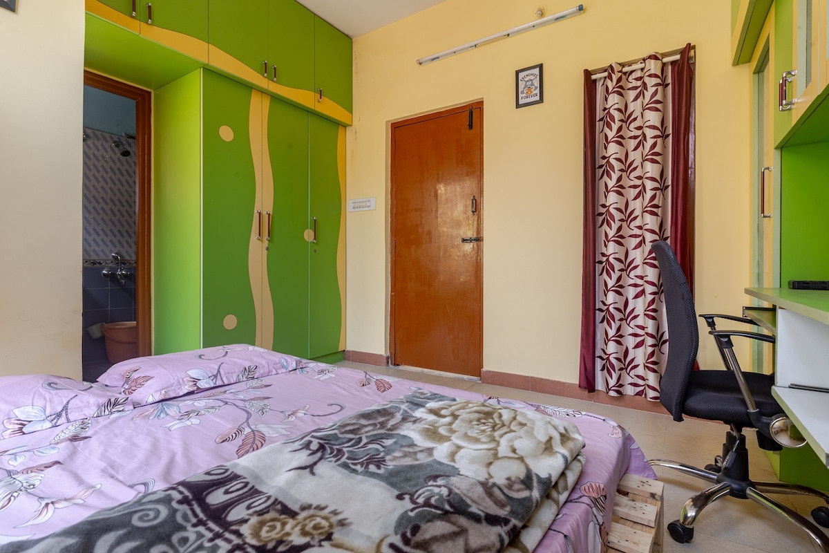 Enjoy a private, sunlit room on the 2nd floor of a quiet villa in prime HSR. The entire floor has just one room with a private w ...Read moreLogin to unlock deals & manage your bookings!