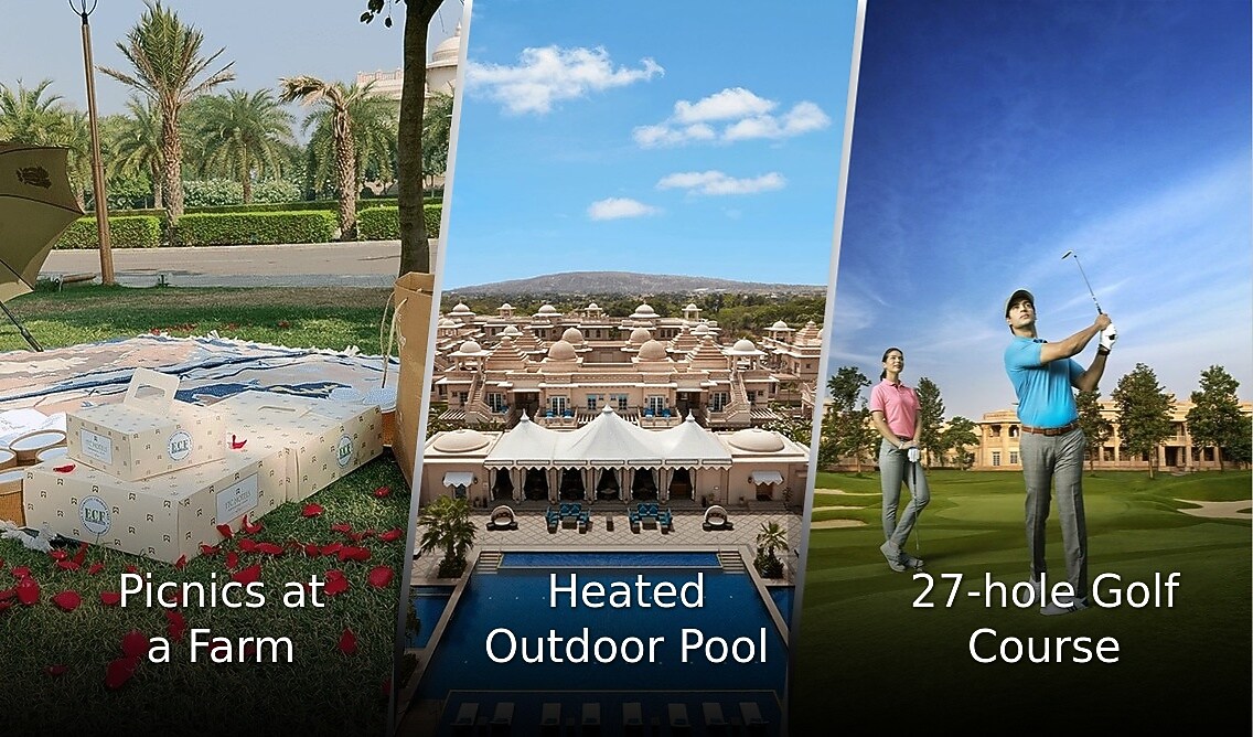 Witness an architectural blend of ancient, medieval and modern India at this luxe property set amidst the Aravalli Range. More