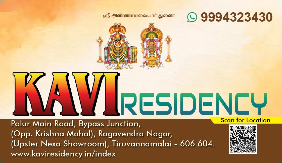 Located in the serene town of Tiruvannamalai, KAVI Residency offers guests a blend of comfort and convenience. Situated on Polur ...Read moreLogin to unlock deals & manage your bookings!
