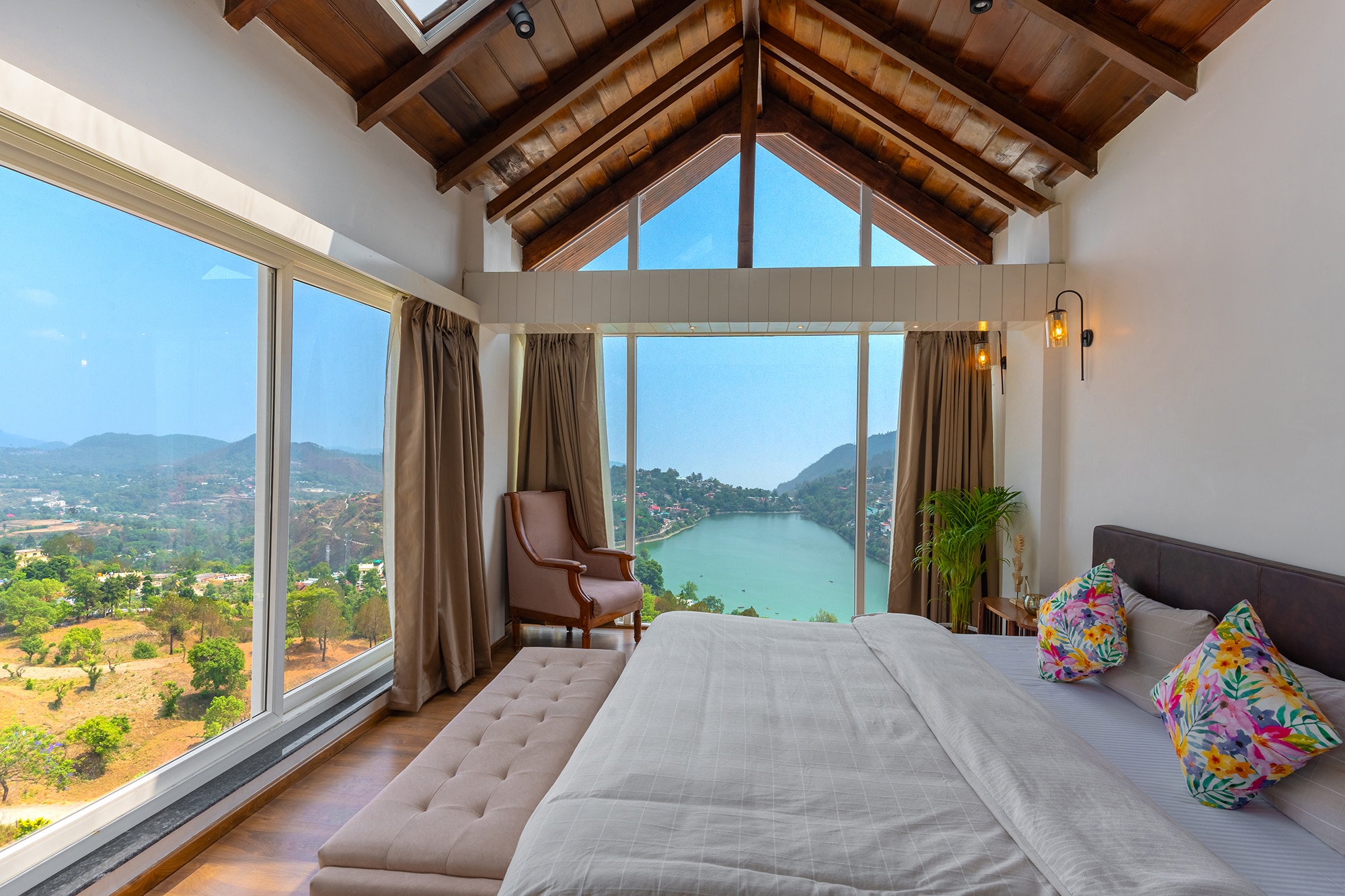 Pet-friendly stay with an infinity pool & Bhimtal Lake views