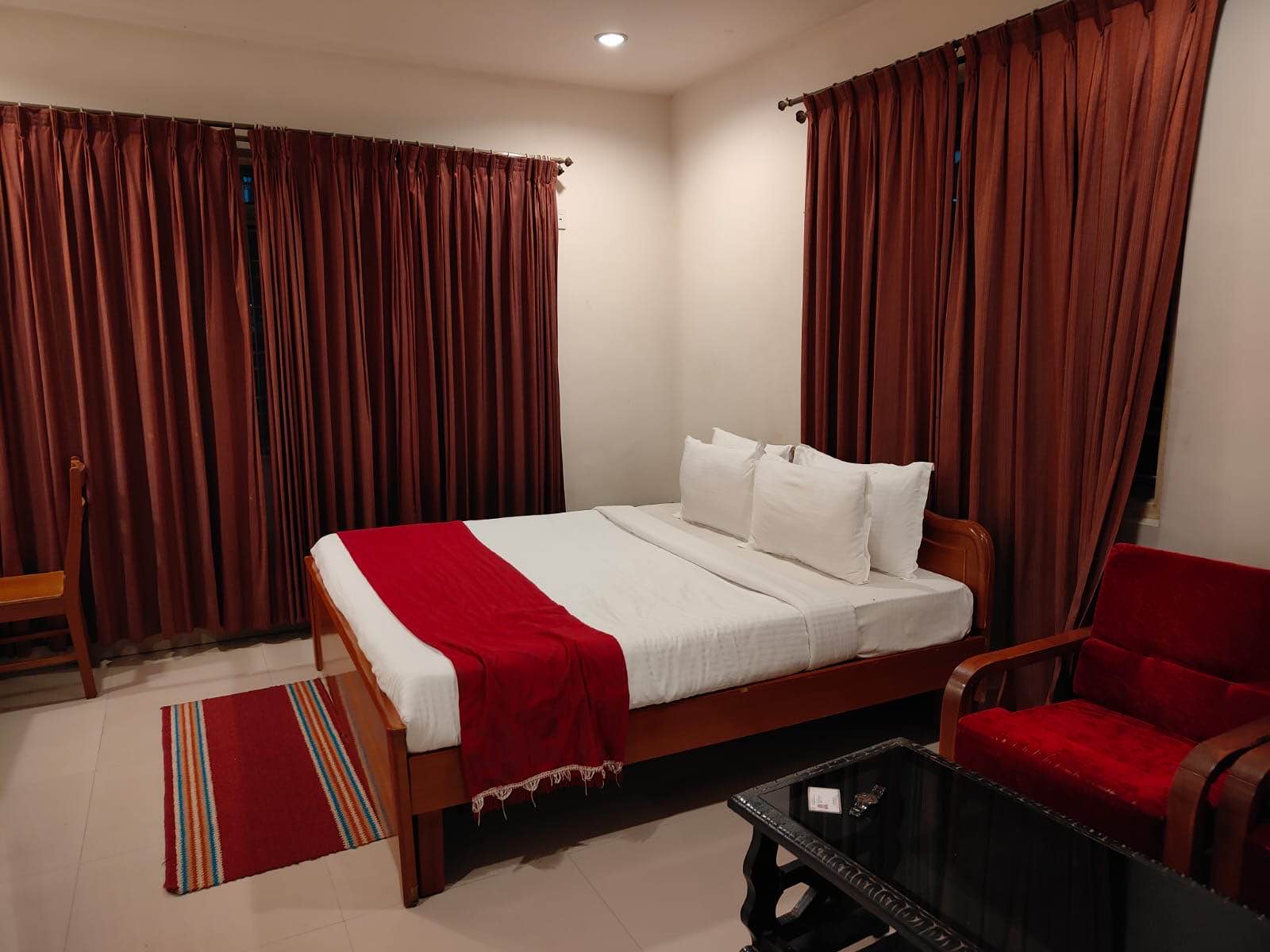 We stayed for just one night. Positives: Good response from receptionist. New and clean towels, bed sheets and pillow covers. Very spacious room with an extra single cot. Central location. Sufficient parking space. Negatives: Poor maintenance. Poor response from restaurant staff. Delayed room service.