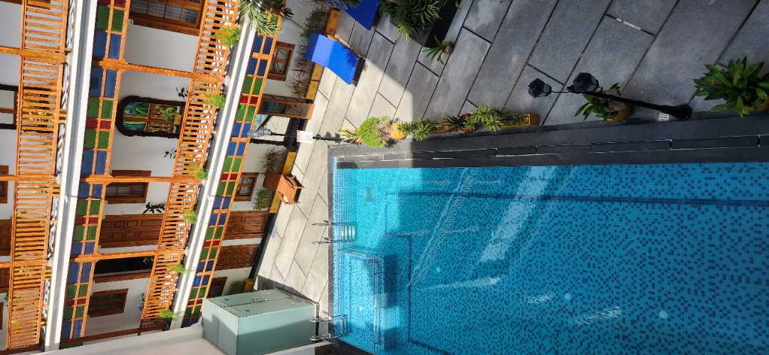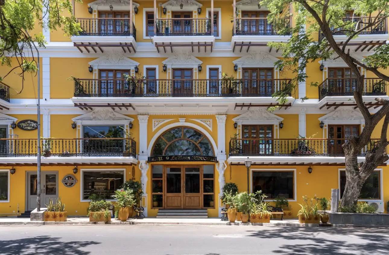 A stylish boutique heritage property in Puducherry boasting French charm, a pool with Jacuzzi, and a rooftop bar.