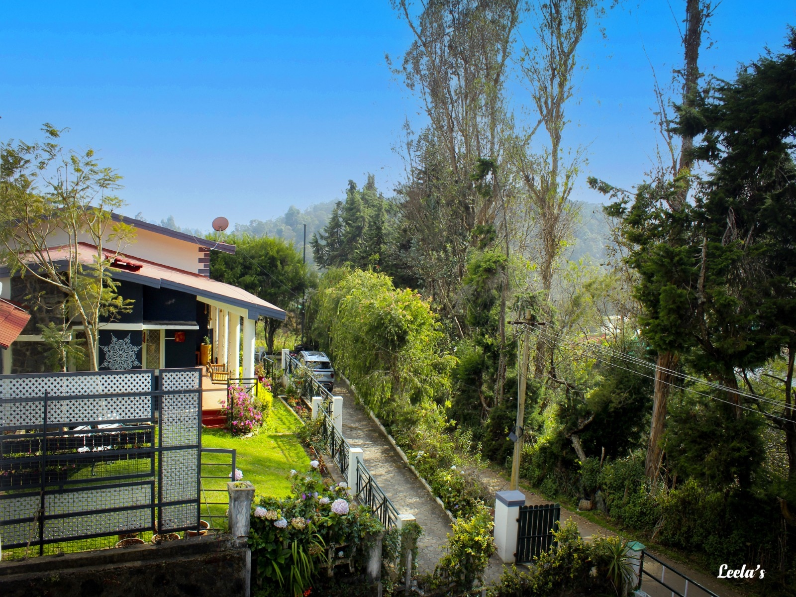 Leela's country house behind rose garden