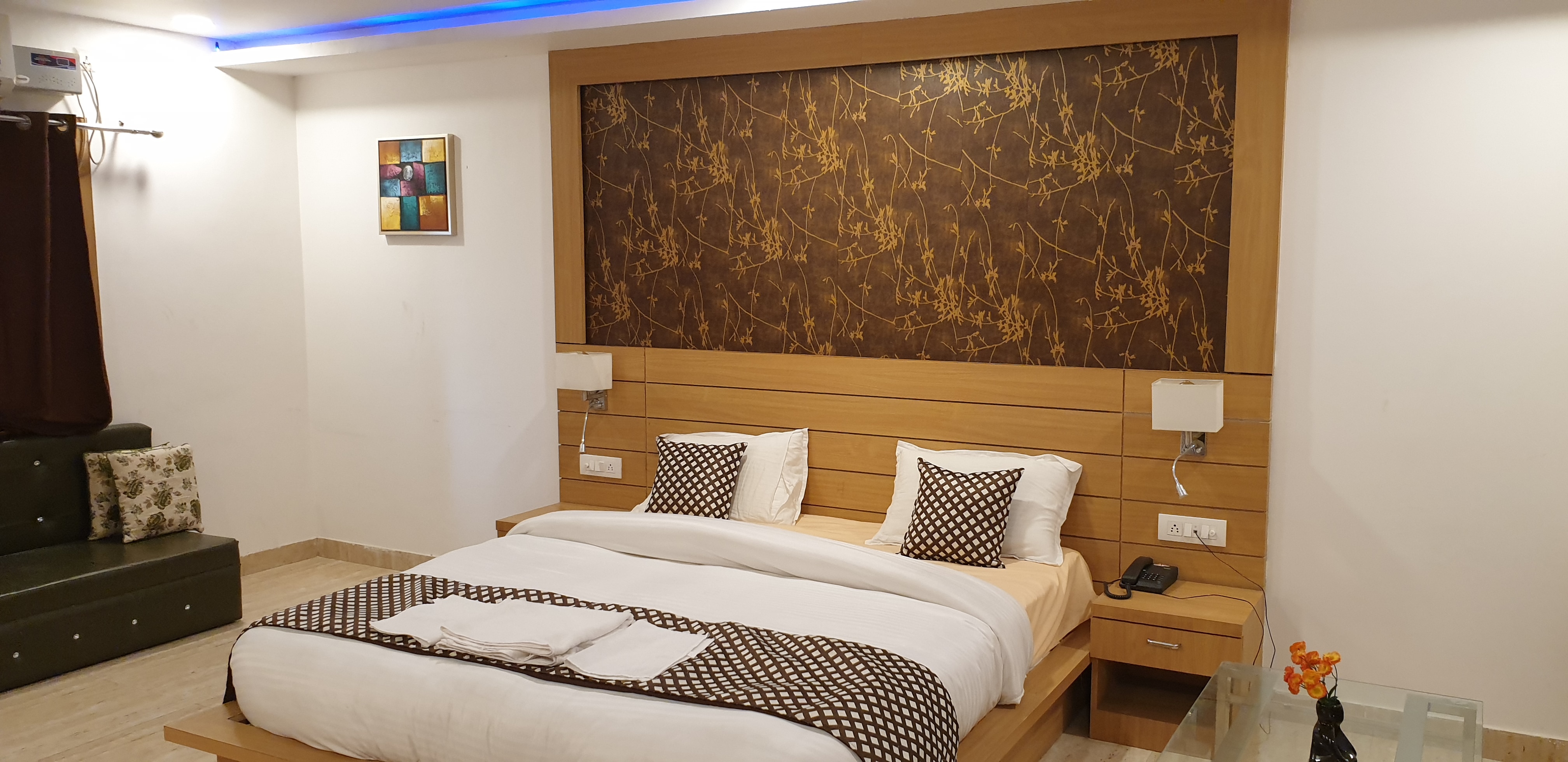 - The property has Super Deluxe Rooms and Executive Rooms and can accommodate 3 adults each. Each of the rooms has an area of 1076 sq.ft.