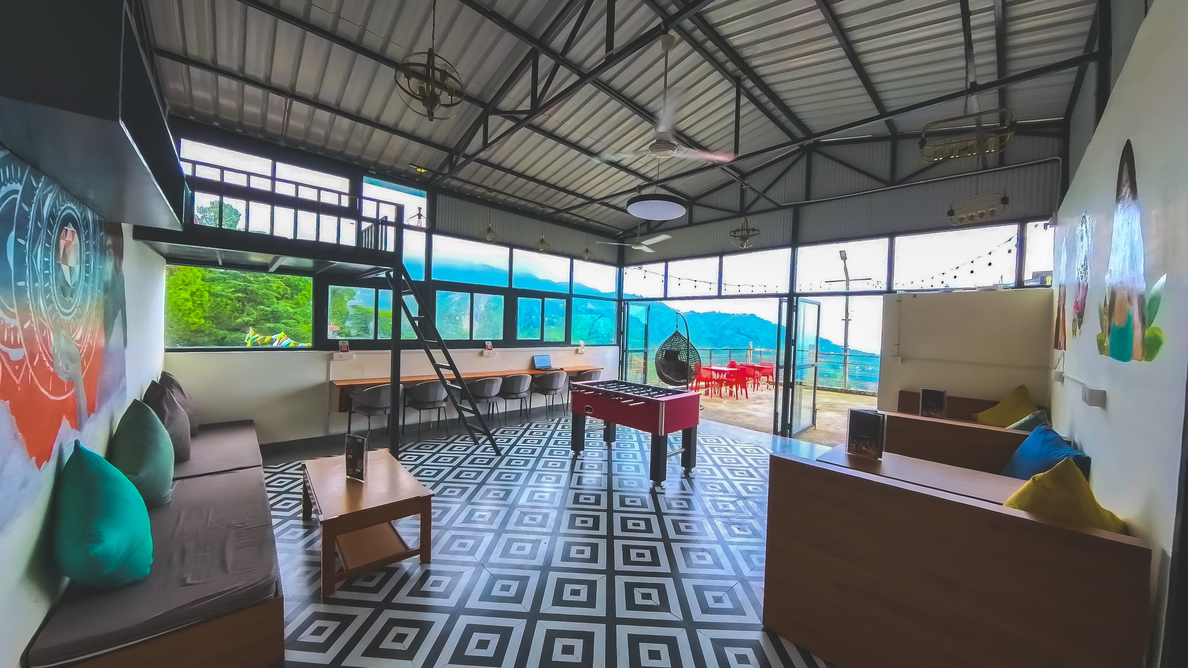 Colourful hostel with a restaurant, lounge & mountain views